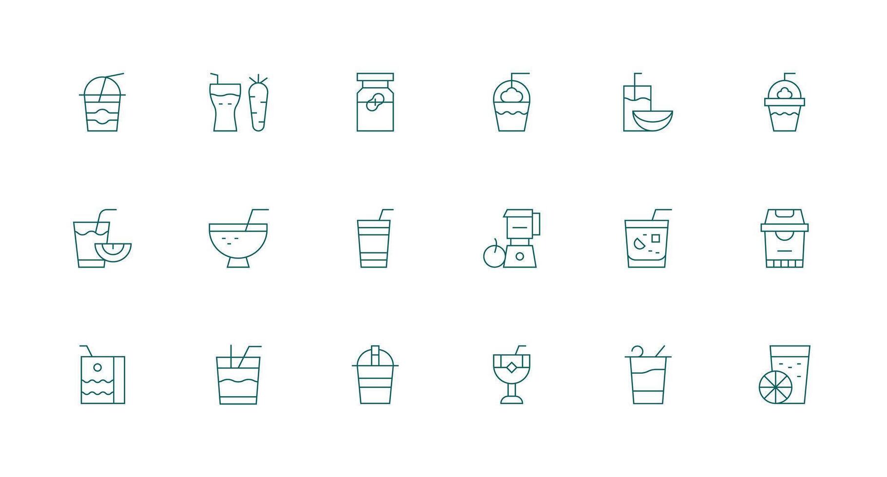 Smoothie Icon Set with 18 Minimal Line Graphics Scalable Icons for Cross-Platform Interfaces Free Vector
