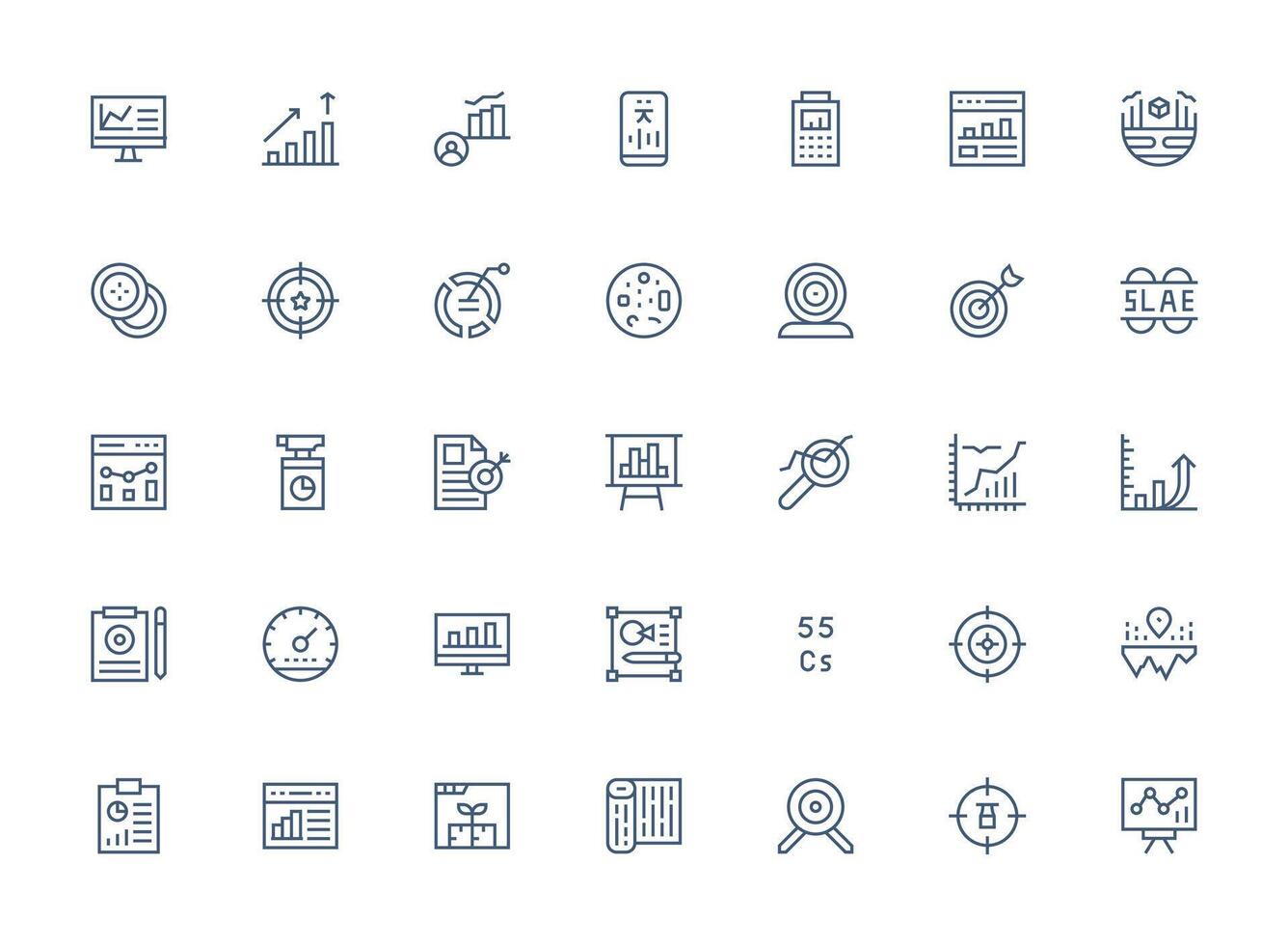 Metrics featuring 35 Icons in Regular Clean Line Design Minimal Icon Set for Interface Projects vector