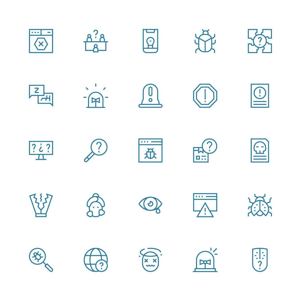 Problem Design Icons featuring 25 in Medium Stroke Outline Style Reliable Icons for All Interfaces vector