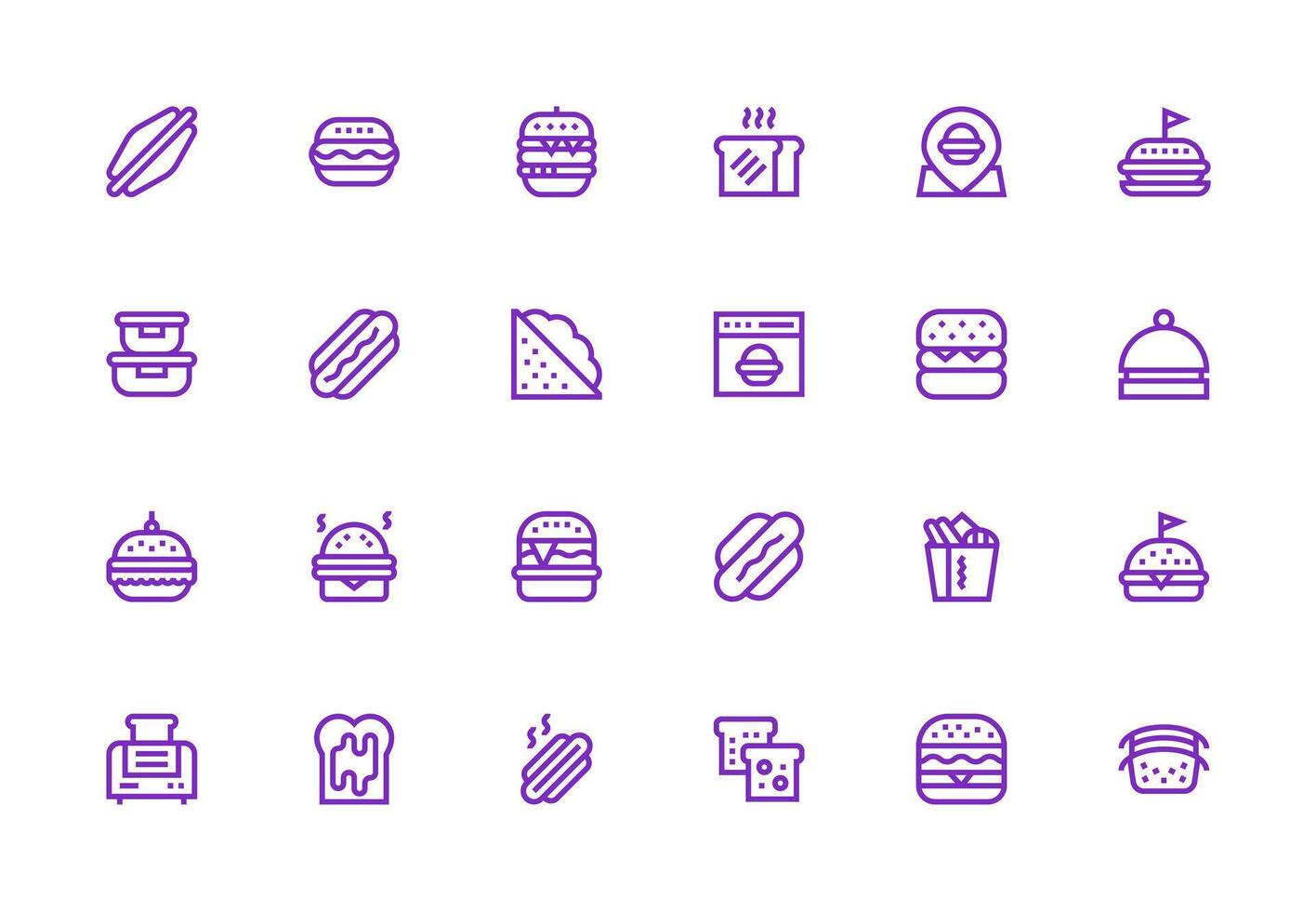 Sandwich Set with 24 Thick Line Line Icons Quick Access Icons for UI Development Free Vector