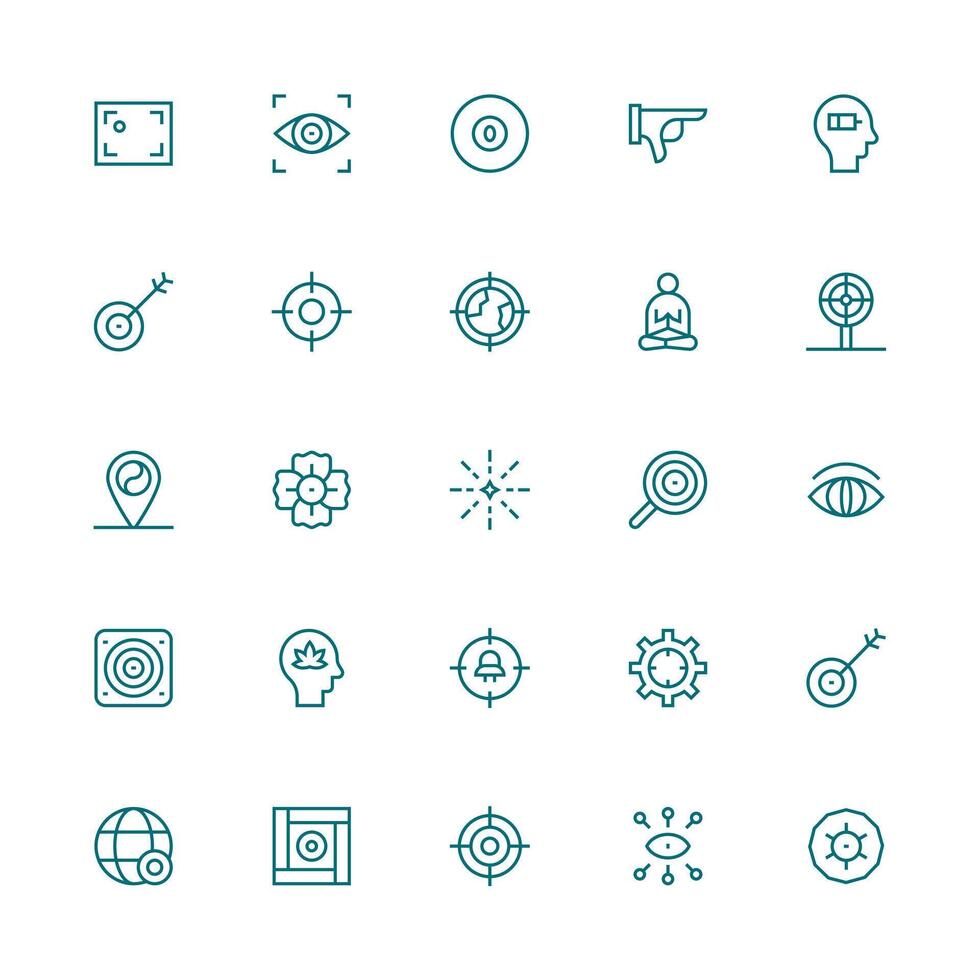 Focus Icon Set with 25 Medium Stroke Outline Graphics Multi-Purpose Icon Pack for Templates Free Vector
