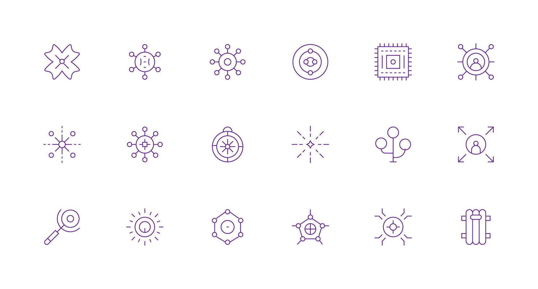 Central Design Icons featuring 18 in Minimal Line Style Complete Icon Set for Mobile Apps Free Vector