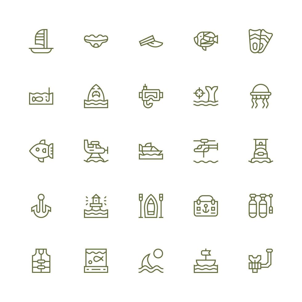 25 Icons for Marine in Medium Stroke Outline Format Full Icon Library for UI Designers vector