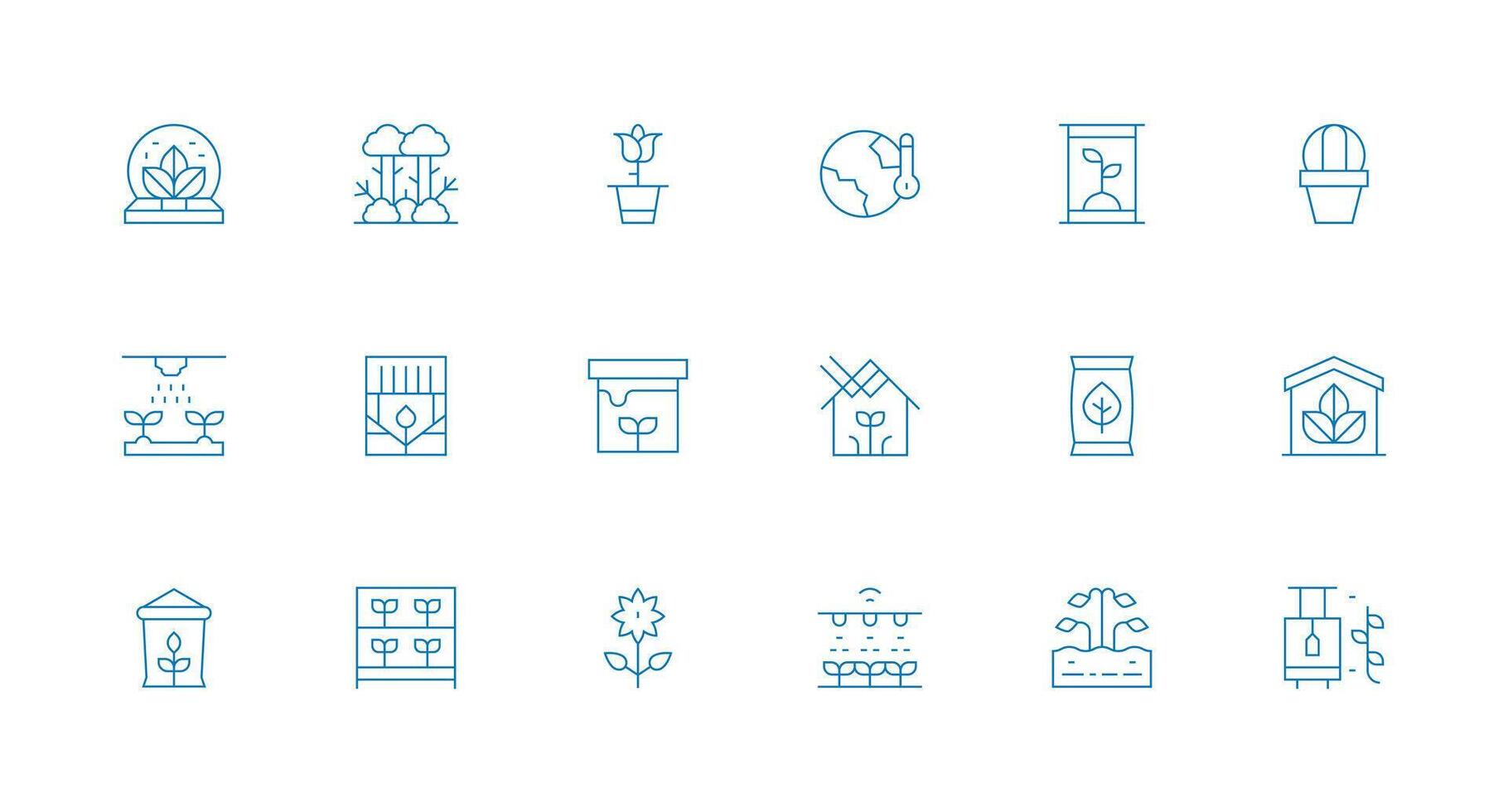 Greenhouse featuring 18 Icons in Minimal Line Design Neatly Designed Icons for Web Platforms Free Vector