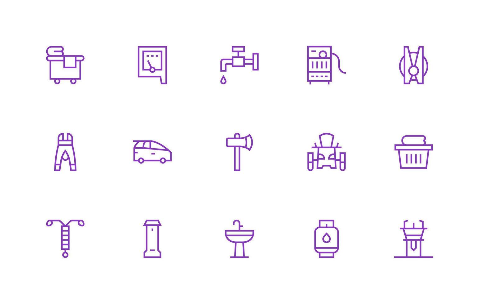 15 Utility Icons in Regular Line Aesthetic Simple Icons for Interface and Wireframes vector
