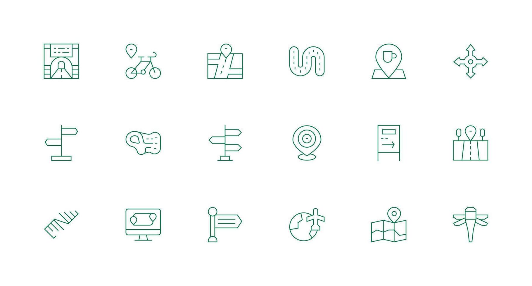 Route Icon Set with 18 Minimal Line Graphics Essential Icons for Rapid UI Building Free Vector