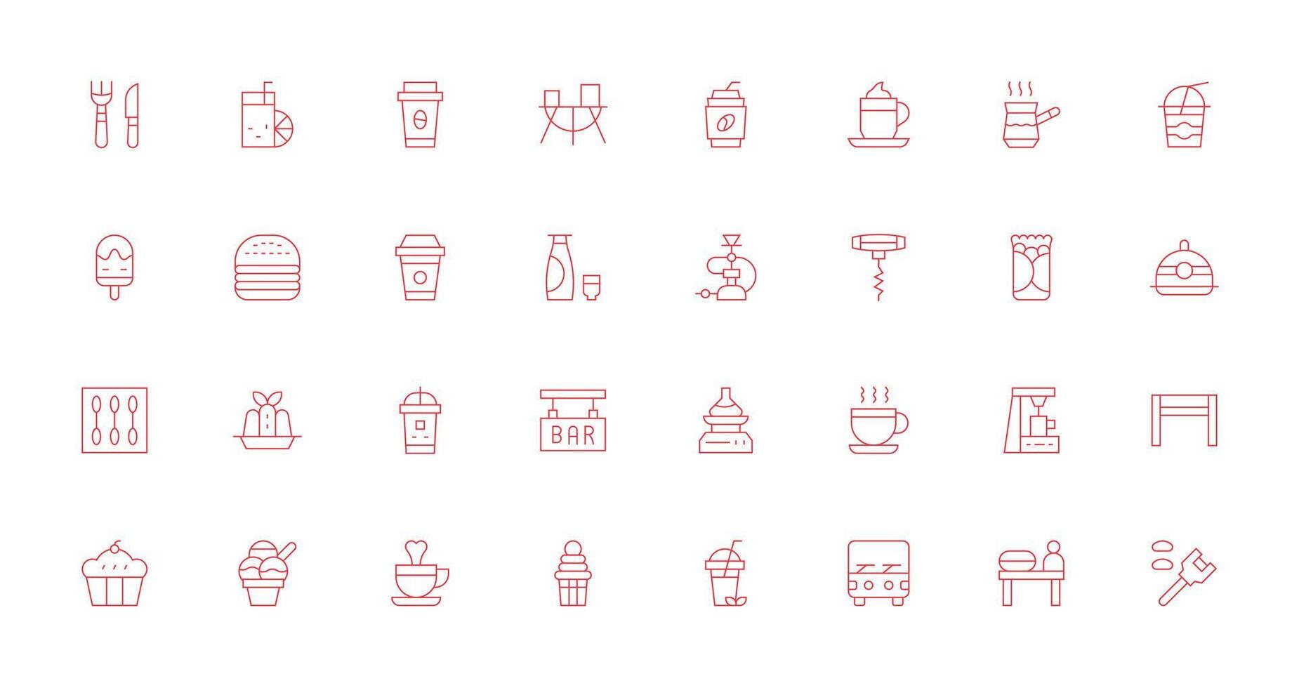Cafe Visual Pack containing 32 Thin Line Icons Scalable Icons for Cross-Platform Interfaces vector