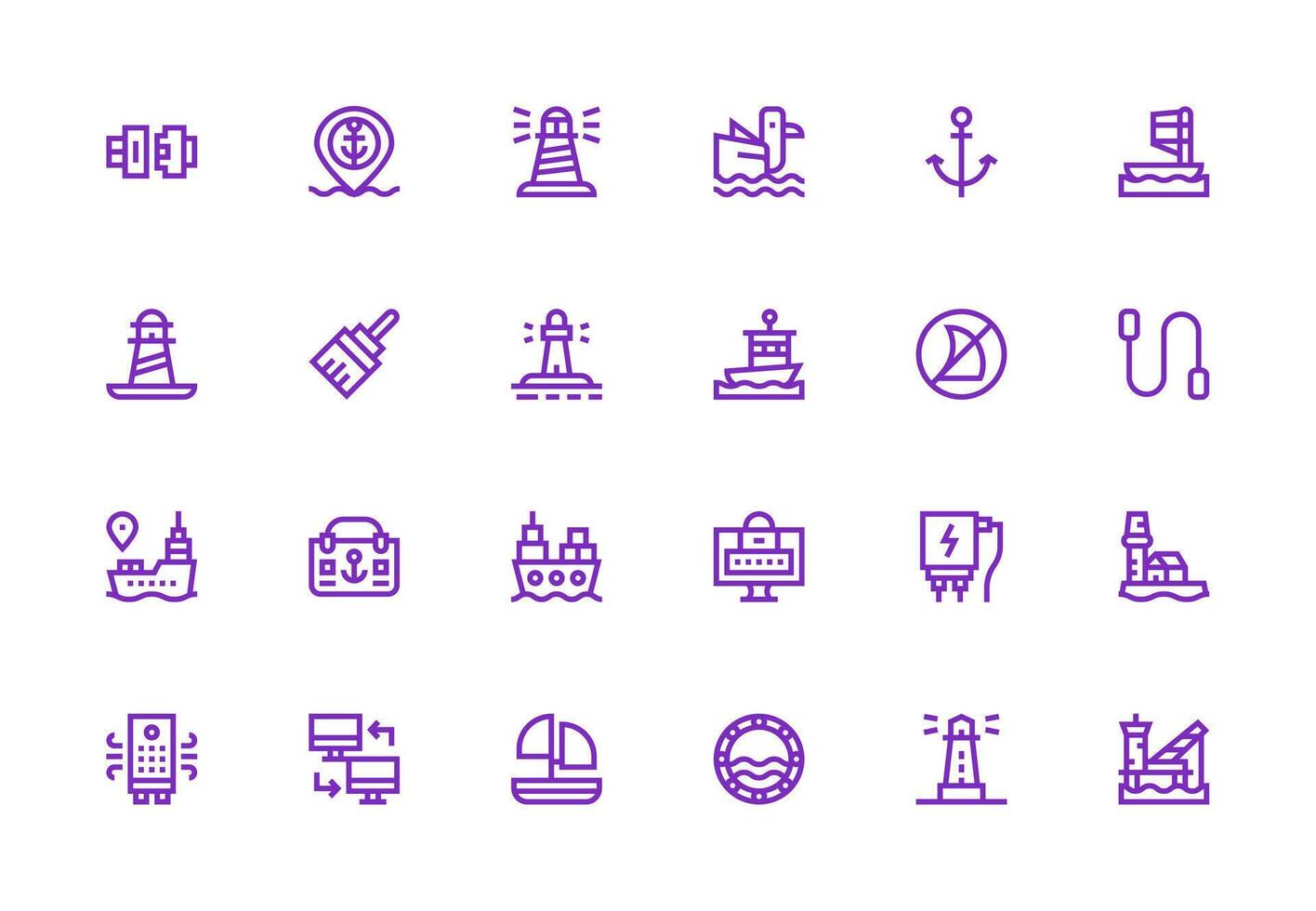 24 Thick Line Line Vectors for Port Theme Minimal Icon Set for Interface Projects
