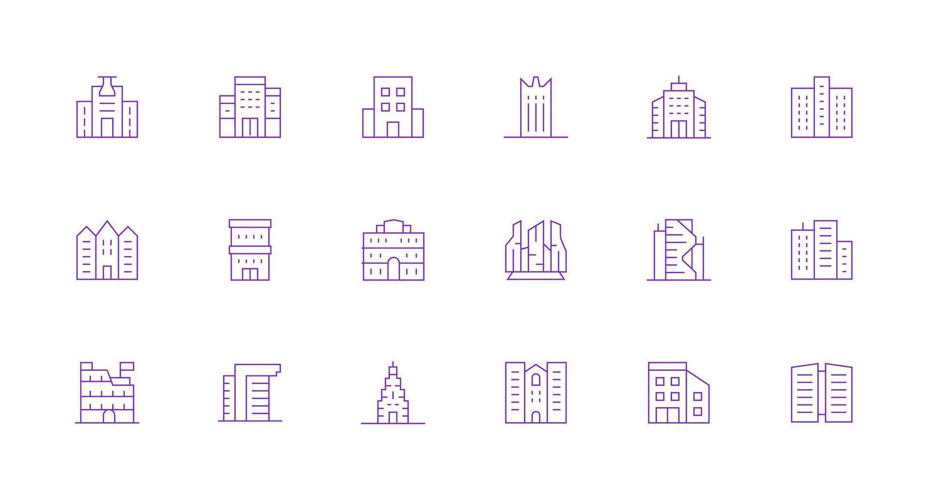 HighRise Design Icons featuring 18 in Minimal Line Style Reusable Icon Set Free Vector