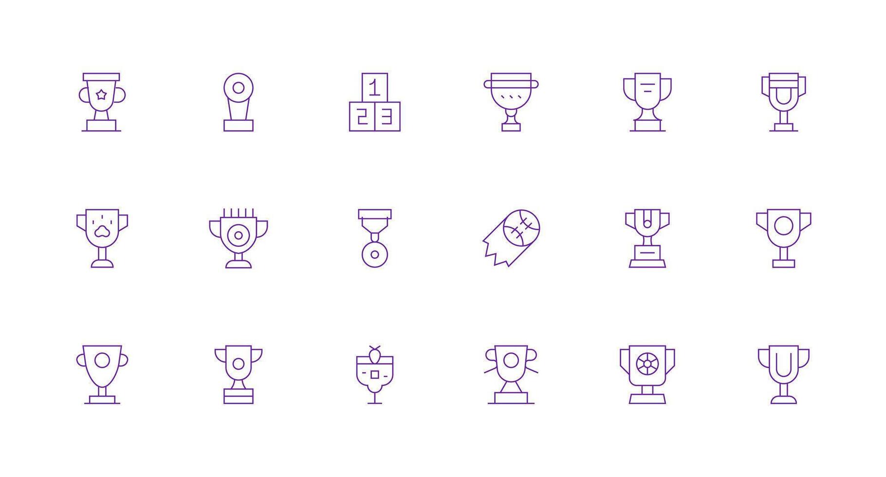 Third Place Design Icons featuring 18 in Minimal Line Style Sharp Icons for Presentations vector