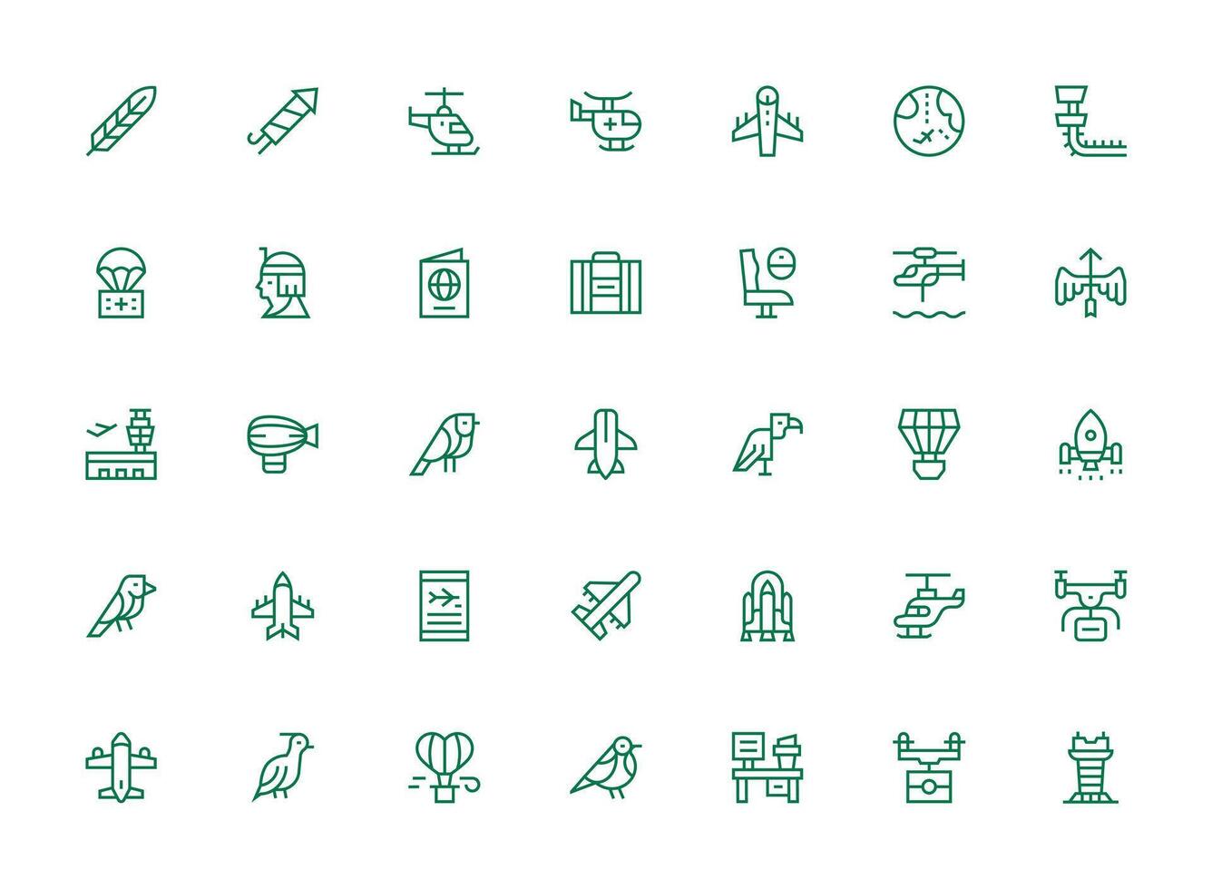 Flight Icon Set with 35 Regular Clean Line Graphics Style Icon Set Free Vector