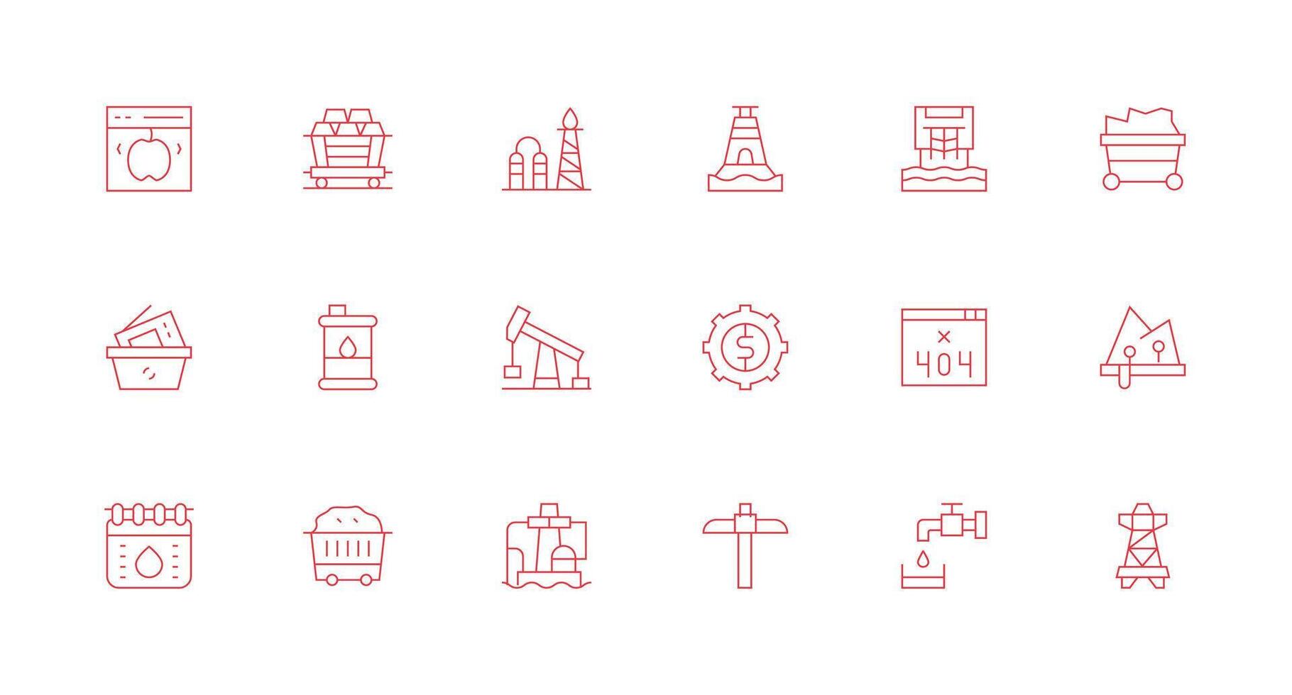 Resource Icon Set with 18 Minimal Line Graphics Detailed Icon Collection for Design Systems vector