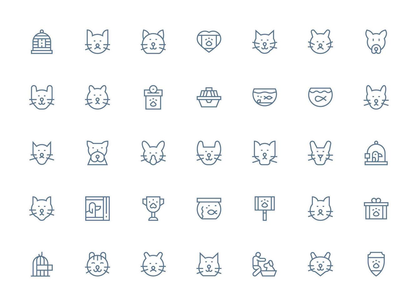Regular Clean Line Icons from Pet Set with 35 Vectors Multi-Style Icon Collection Free Vector