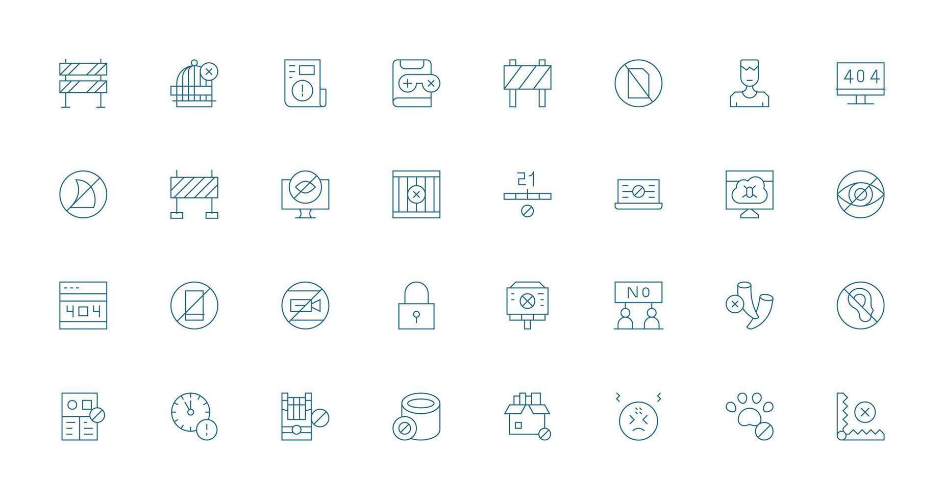Access Denied Icon Set with 32 Thin Line Graphics Line Icon Collection vector