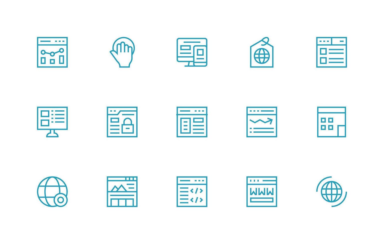 Website Set with 15 Regular Line Icons Simplified Icon Pack for Visual Tools vector