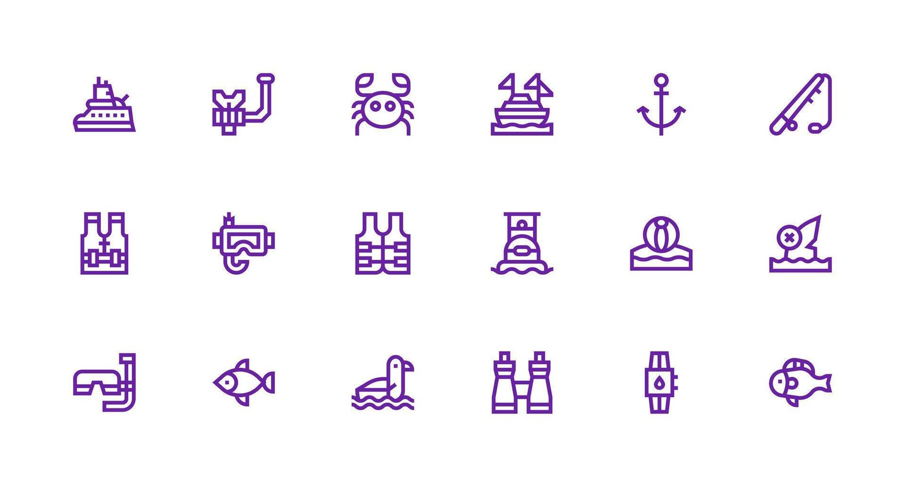 Ocean Design Icons featuring 18 in Strong Stroke Line Style Icons Built for Visual Consistency Pack vector