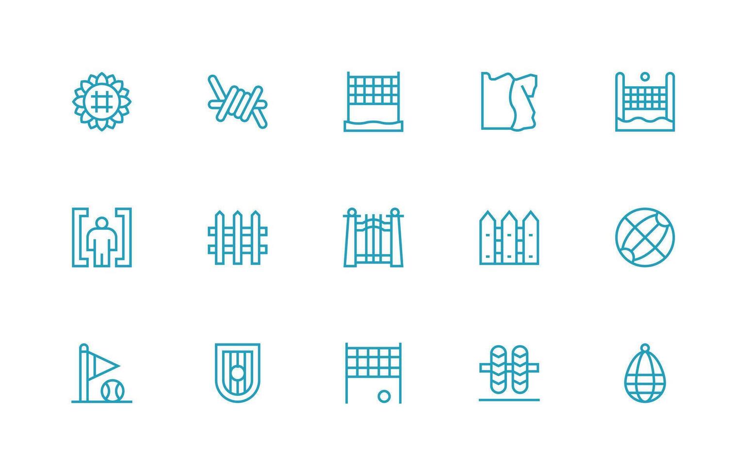 Boundary Icon Set with 15 Regular Line Graphics Simple Icons for Interface and Wireframes vector