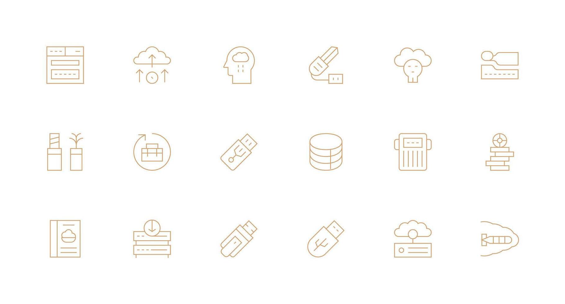 Data Backup Icon Set with 18 Minimal Line Graphics Design Ready Icon Set for Teams Free Vector