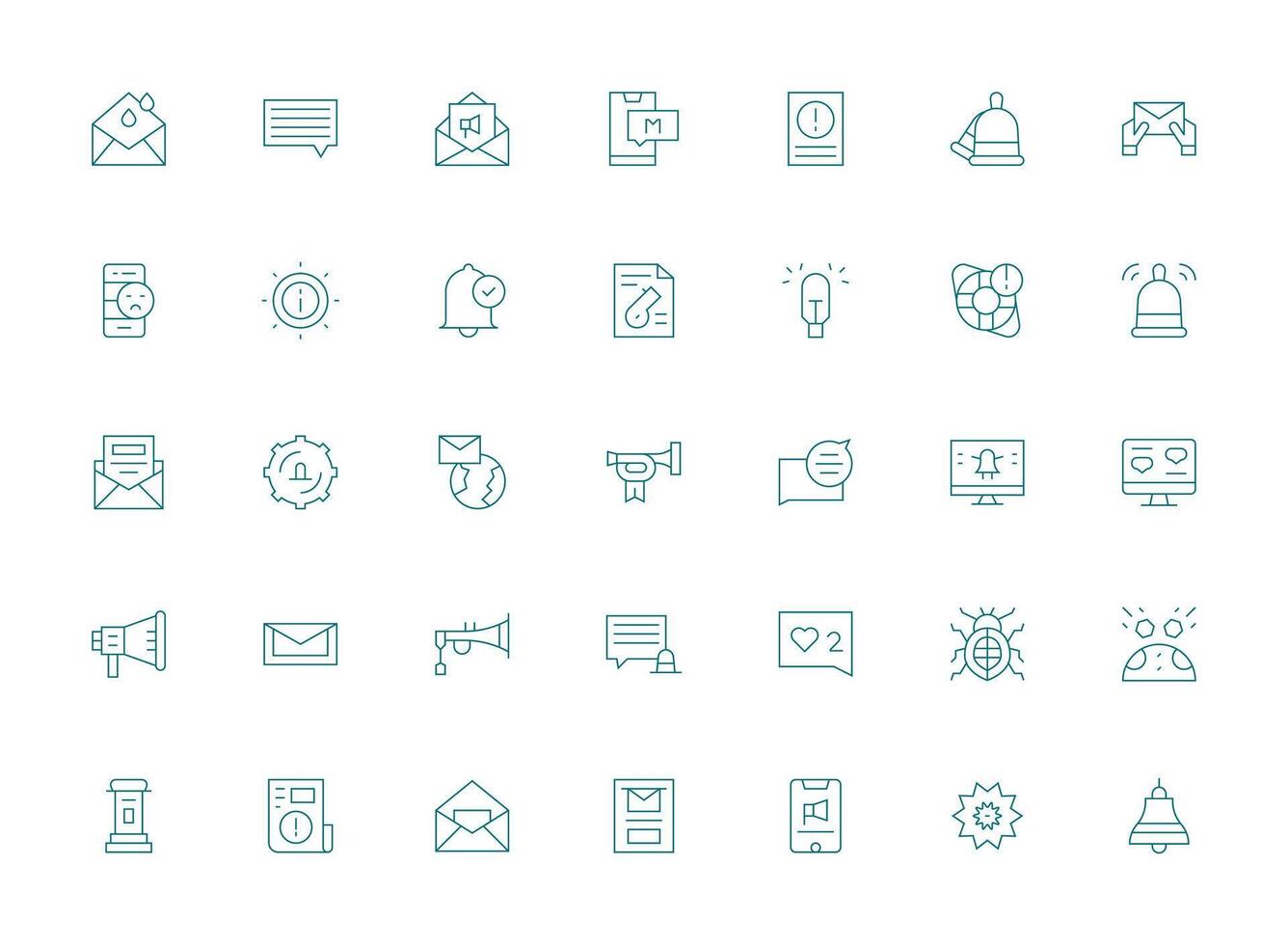 Notification Icon Set with 35 Light Line Graphics Minimal Icon Set for Interface Projects Free Vector