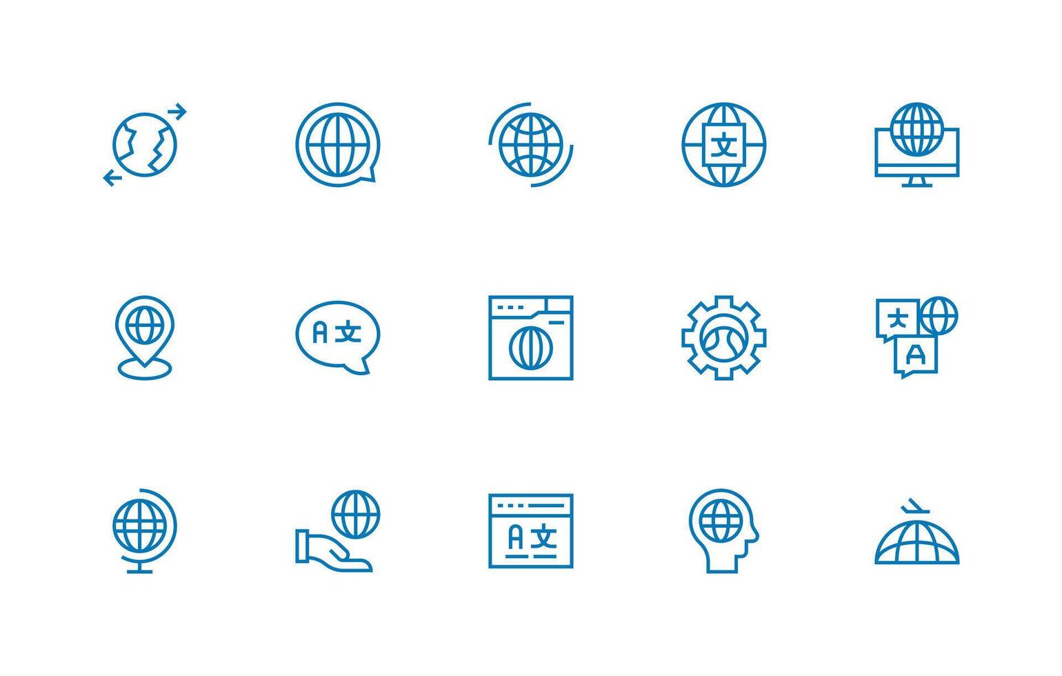 Internationalization including 15 Regular Line Illustrations Quick Access Icons for UI Development Free Vector