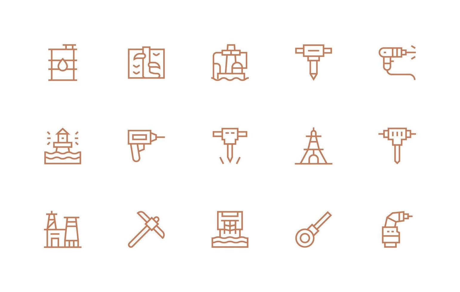 Regular Line Icons from Drilling Set with 15 Vectors All Device Compatible Icon Set