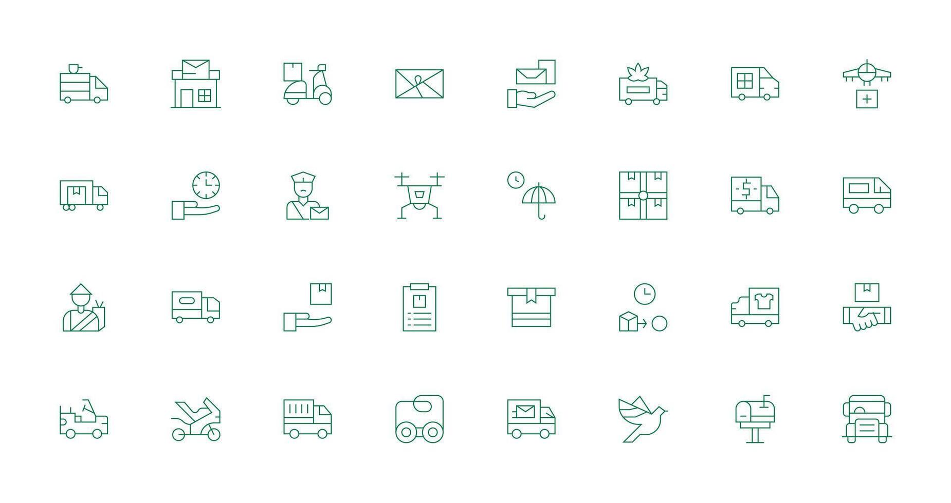 Courier Icon Set with 32 Thin Line Graphics Customizable Icon Series for Mobile Screens Free Vector