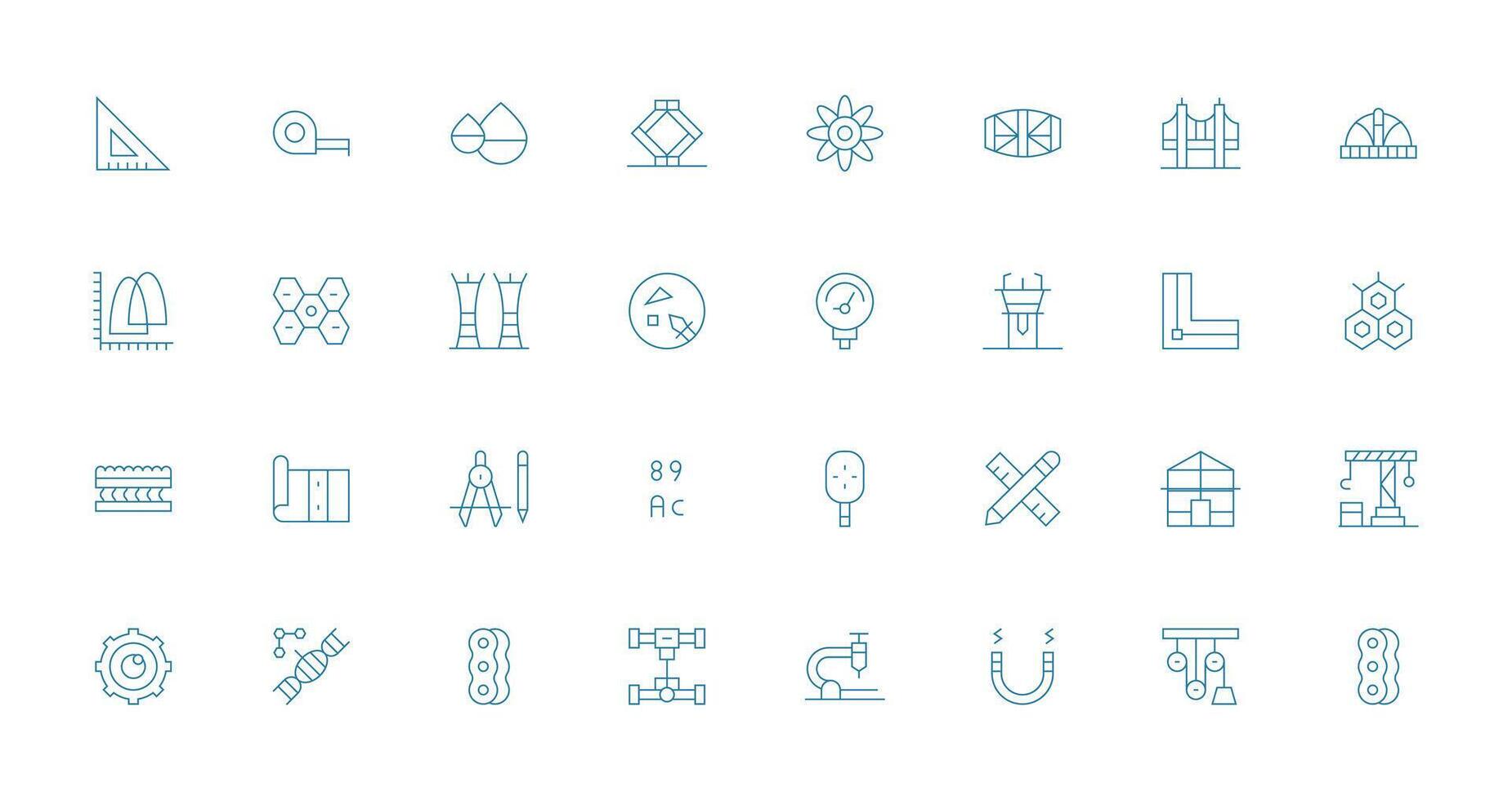 Engineering Set with 32 Thin Line Icons Style Icon Set Free Vector