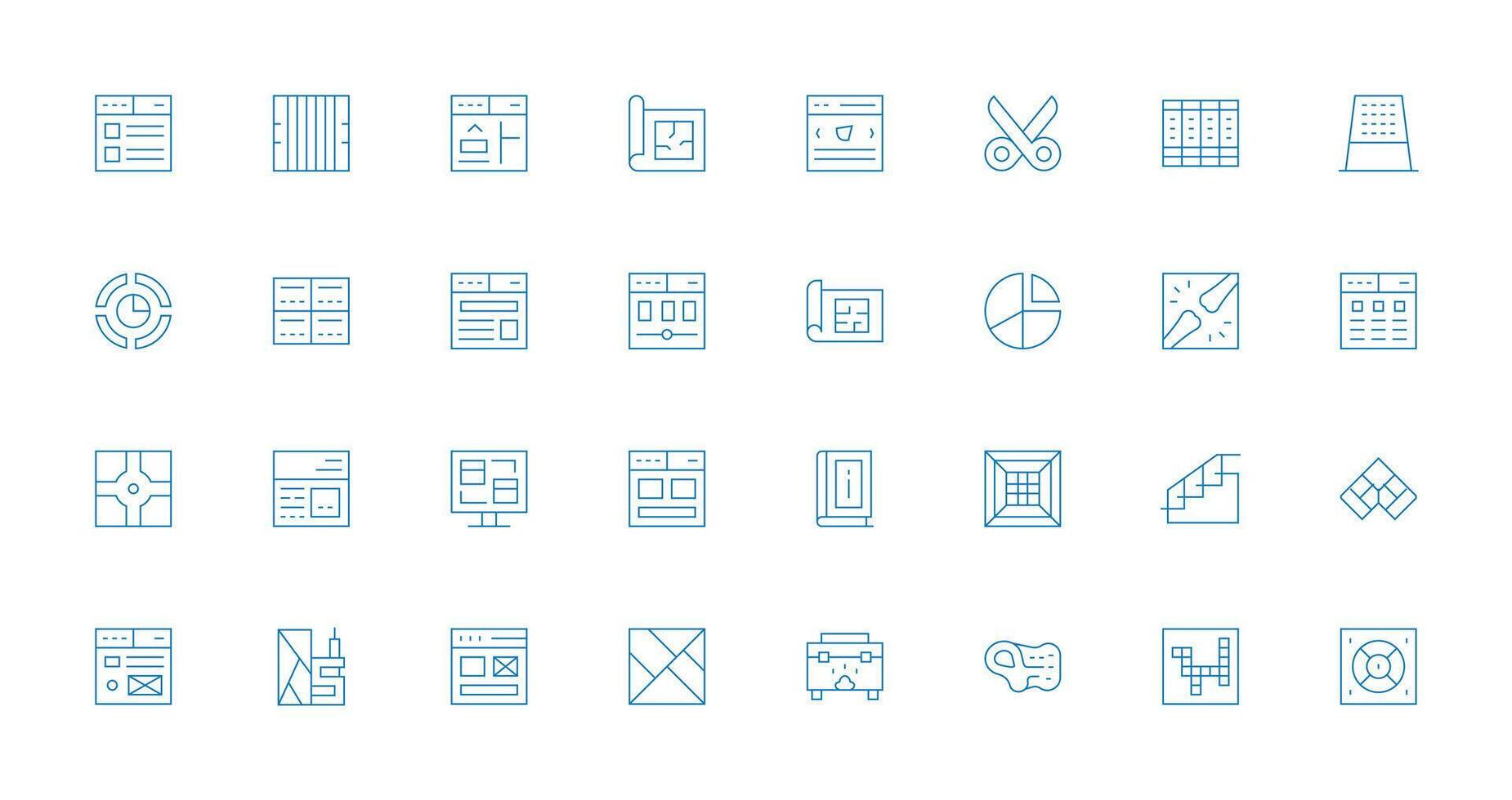 32 Thin Line Icons for Section Graphics Clean Icon Set Icon Pack for UI Projects vector