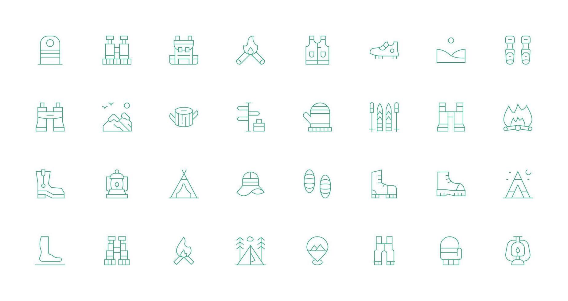 Hiking Icon Set with 32 Thin Line Graphics Simple Icons for Interface and Wireframes Free Vector