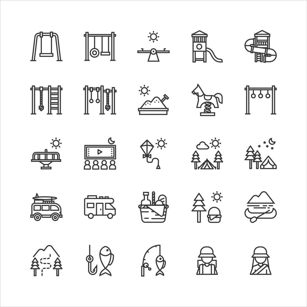 Bundle of summer activity vibes flat line icons collection. simple design vector Pro Vector