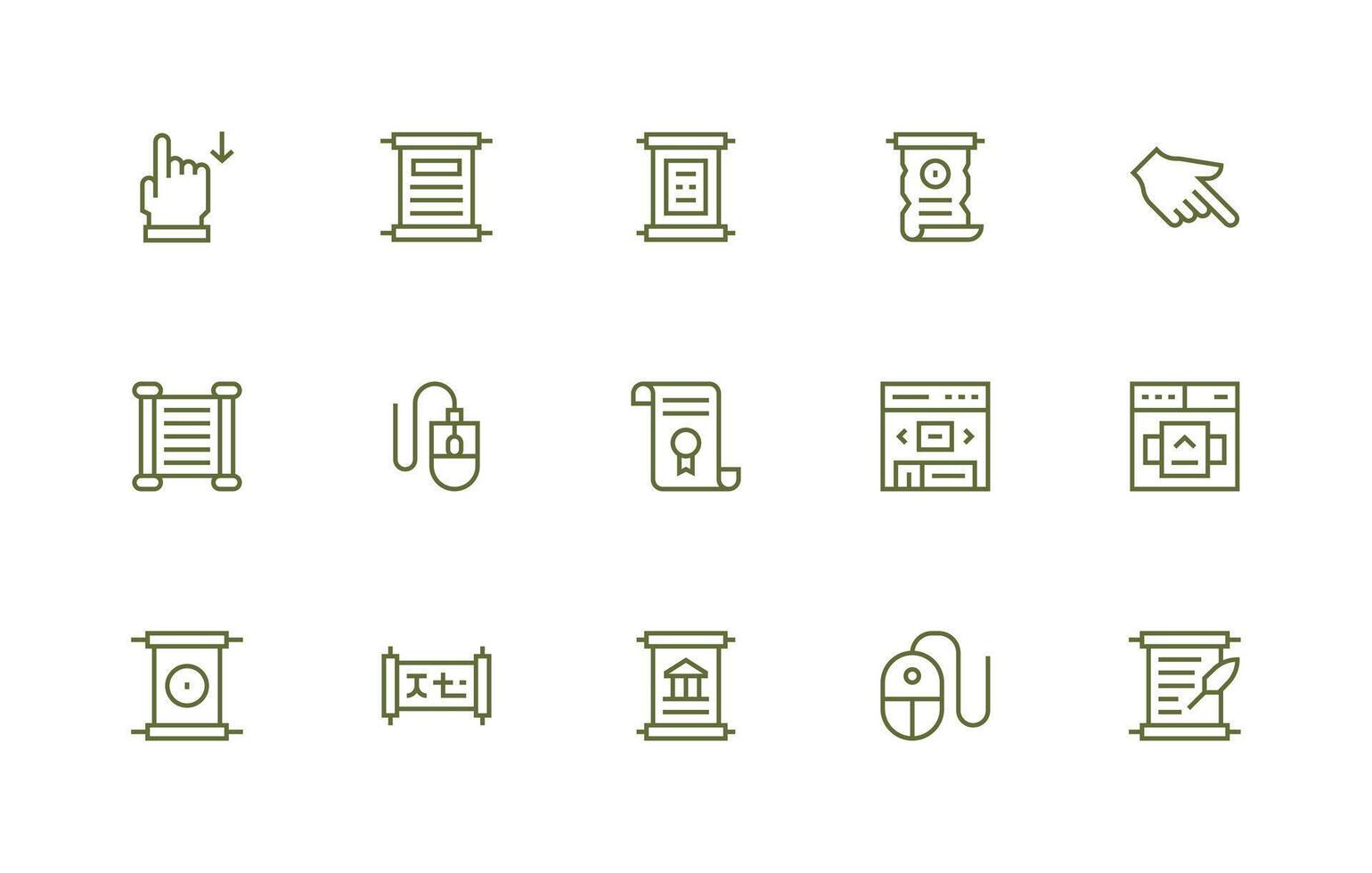 Scroll Icon Set with 15 Regular Line Graphics Compact Icon Set vector