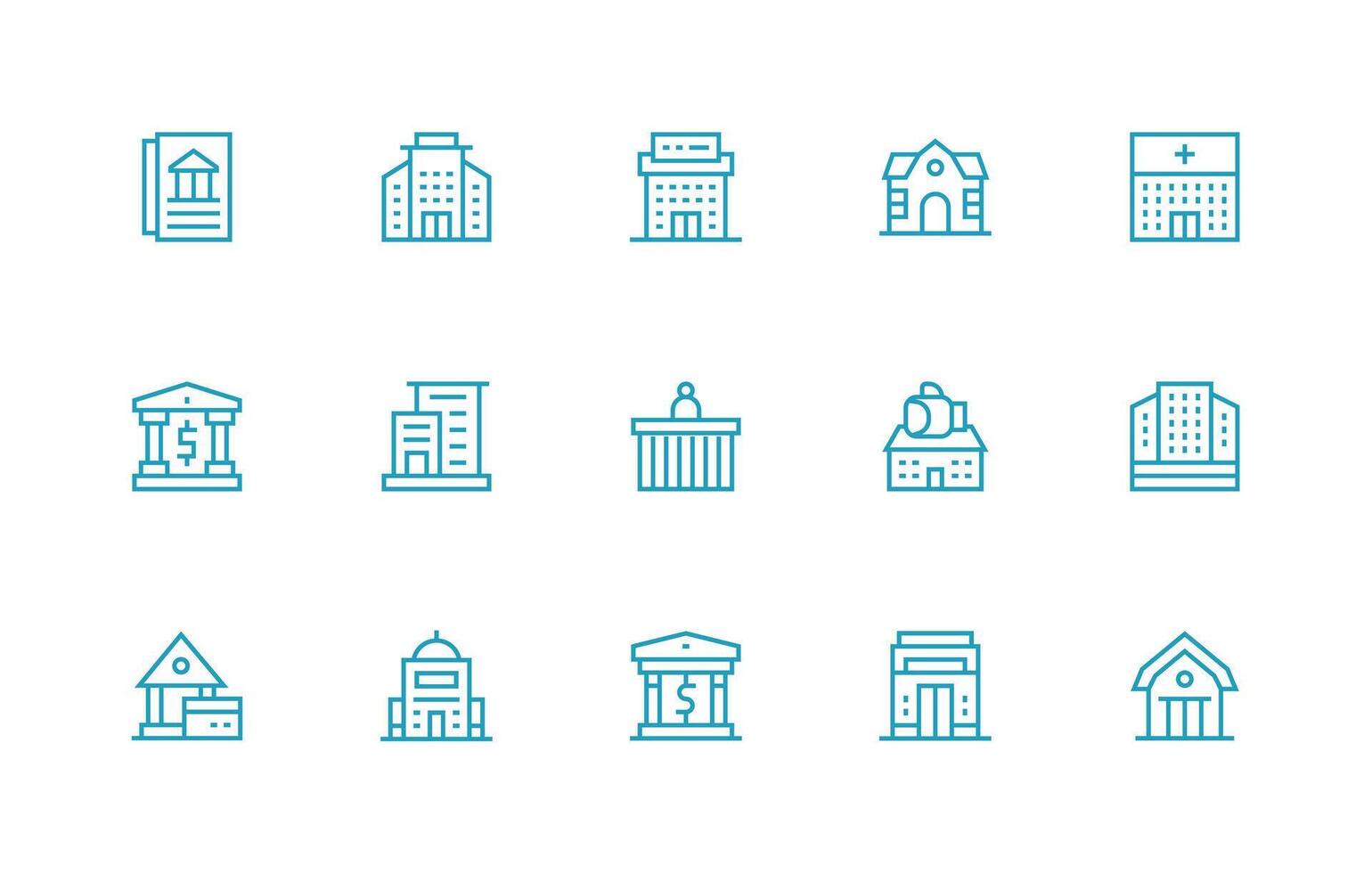Institution Design Icons featuring 15 in Regular Line Style Icon Set for Projects vector