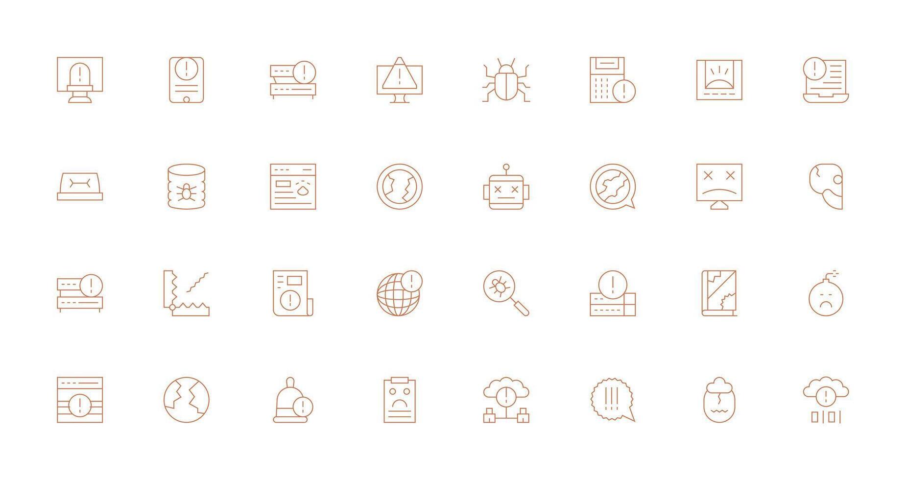 32 Thin Line Style Icons from Malfunction Collection Complete Icon Set for Mobile Apps vector