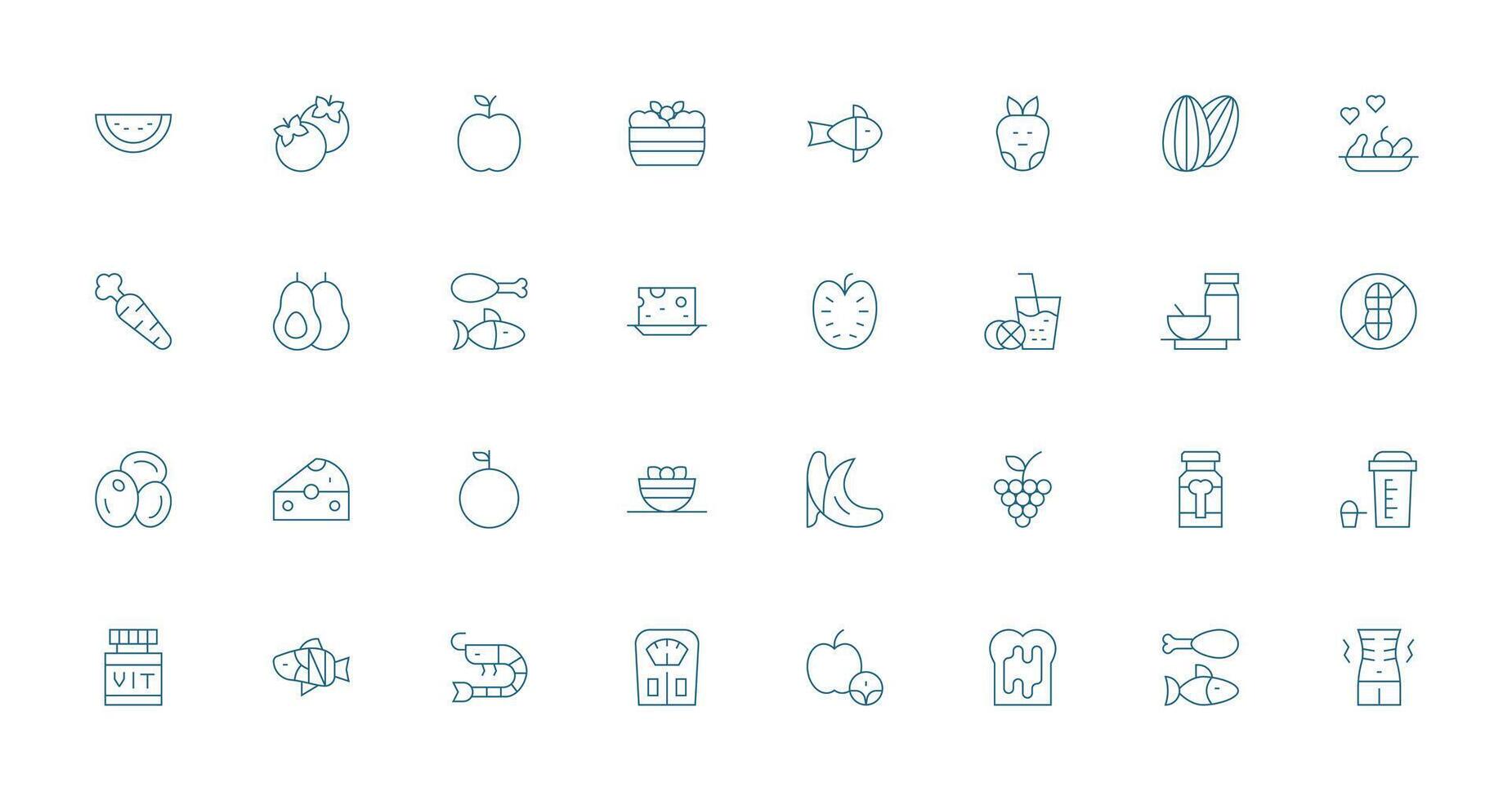 32 Thin Line Icons for Diet Graphics Icon Pack for UI vector