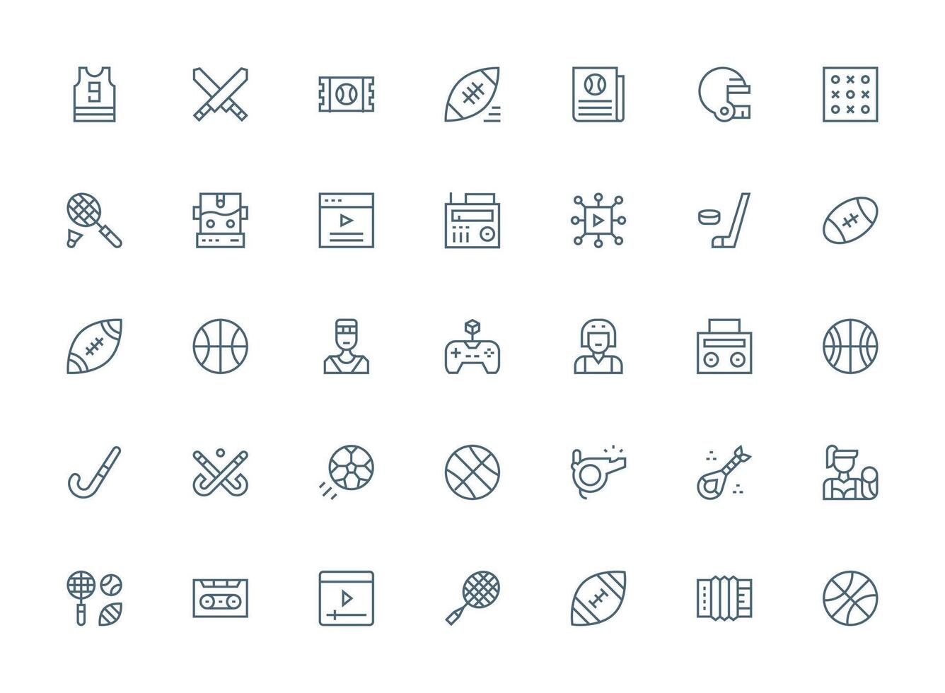 Player Icon Set with 35 Regular Clean Line Graphics Scalable Icons for Cross-Platform Interfaces vector