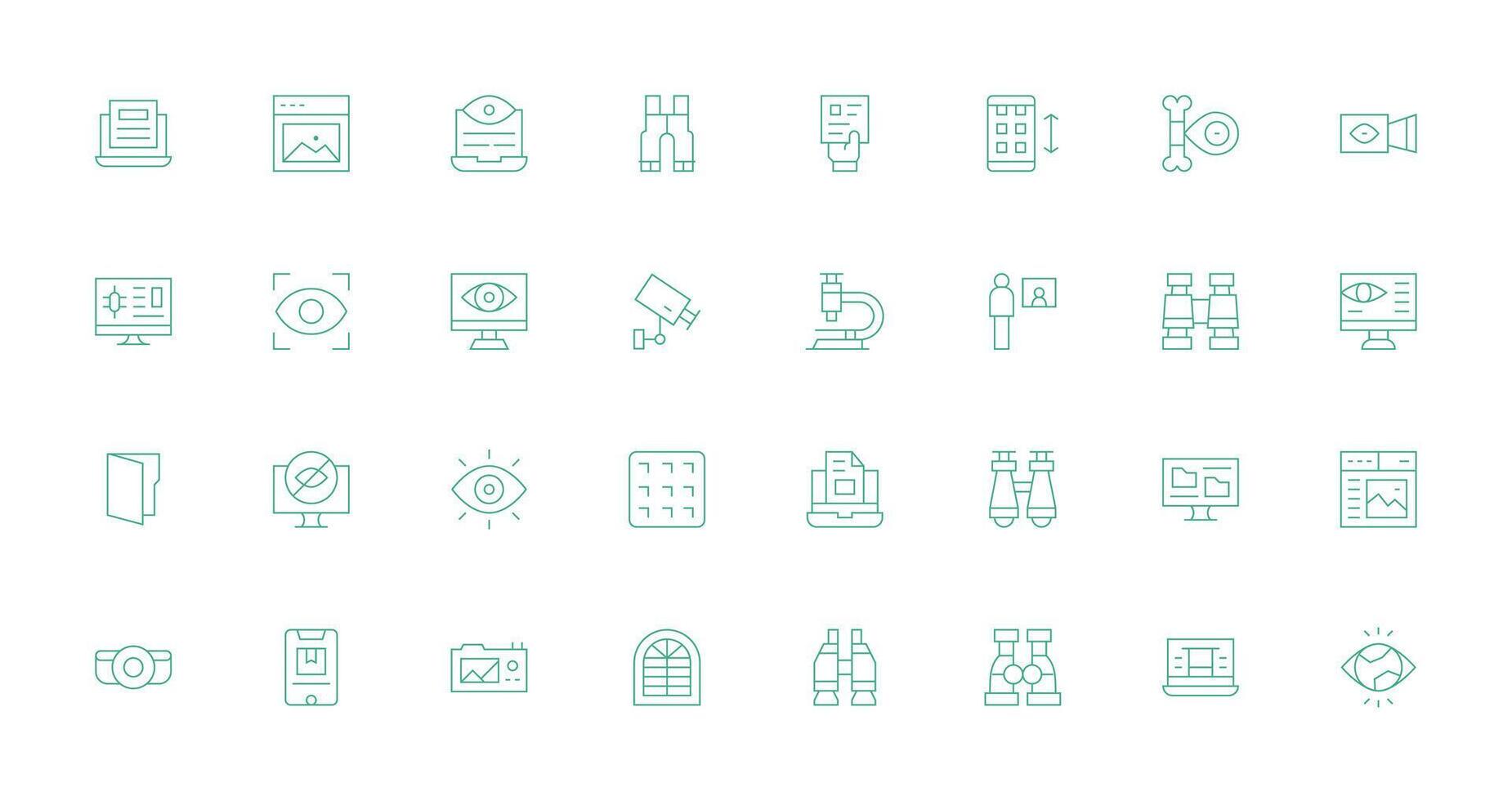 32 Icons for View in Thin Line Format Balanced Icon Set for Functional Design vector