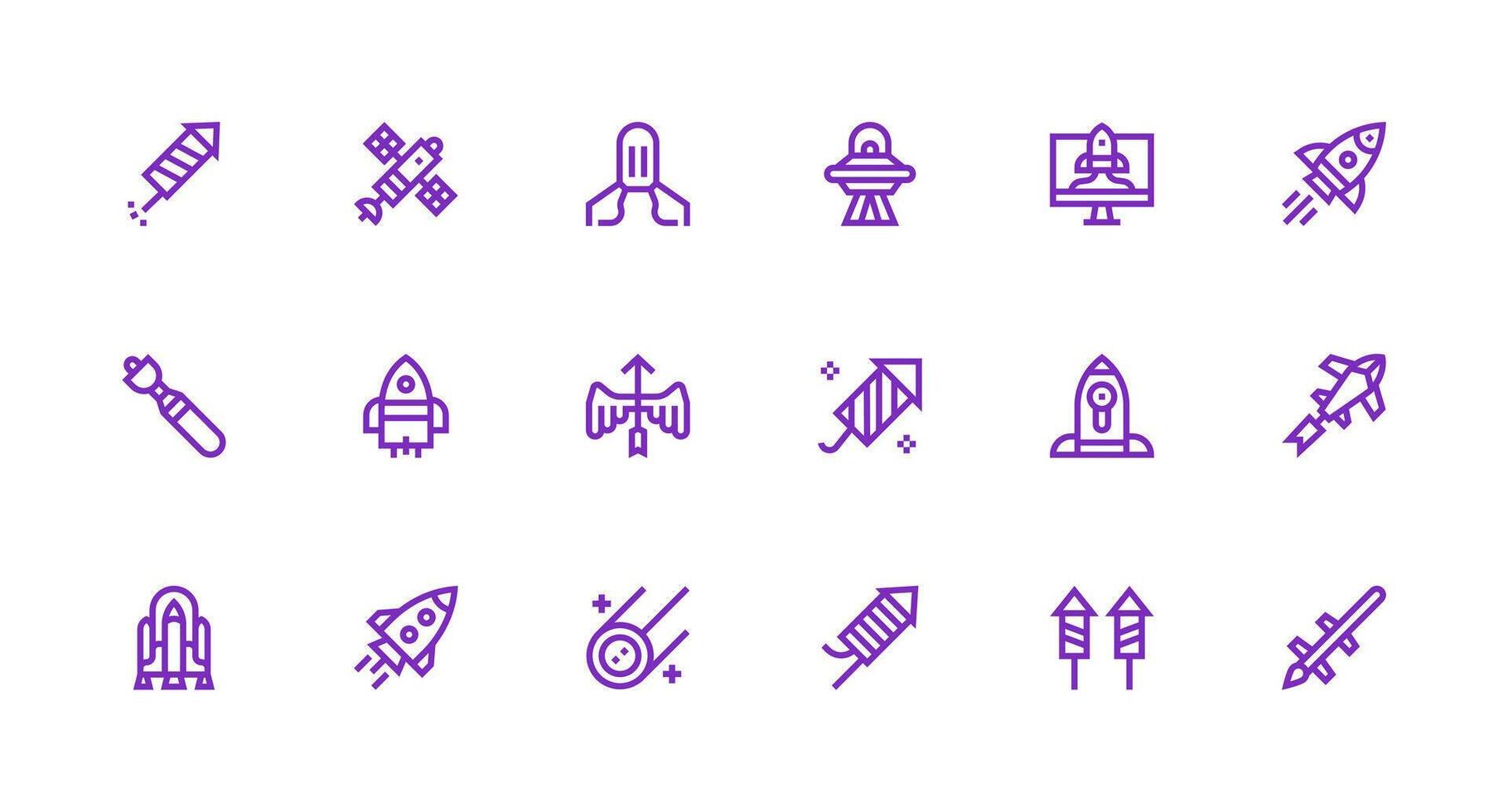 18 Icons for Rocket in Strong Stroke Line Format Simple Icons for Interface and Wireframes vector