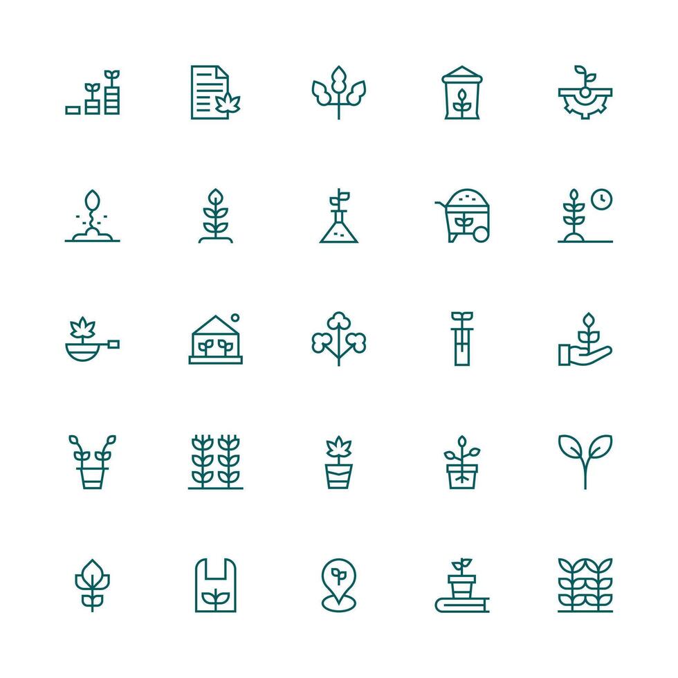 Seedling Design Icons featuring 25 in Medium Stroke Outline Style Icon Set for Apps vector