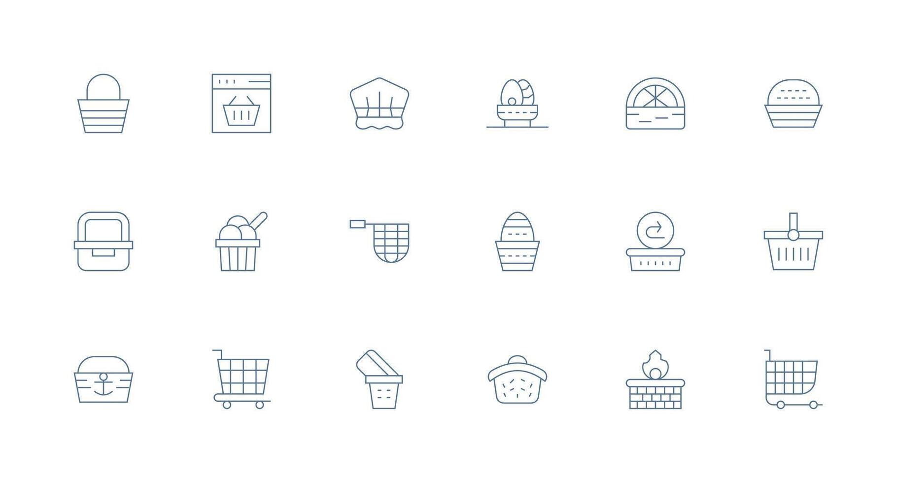 18 Minimal Line Icons for Basket Graphics Functional Icon Series Free Vector