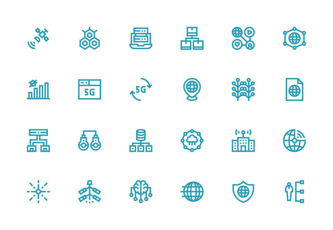 Thick Line Line Style Network Icons with 24 Vectors High-Resolution Icons for Any Platform Free Vector