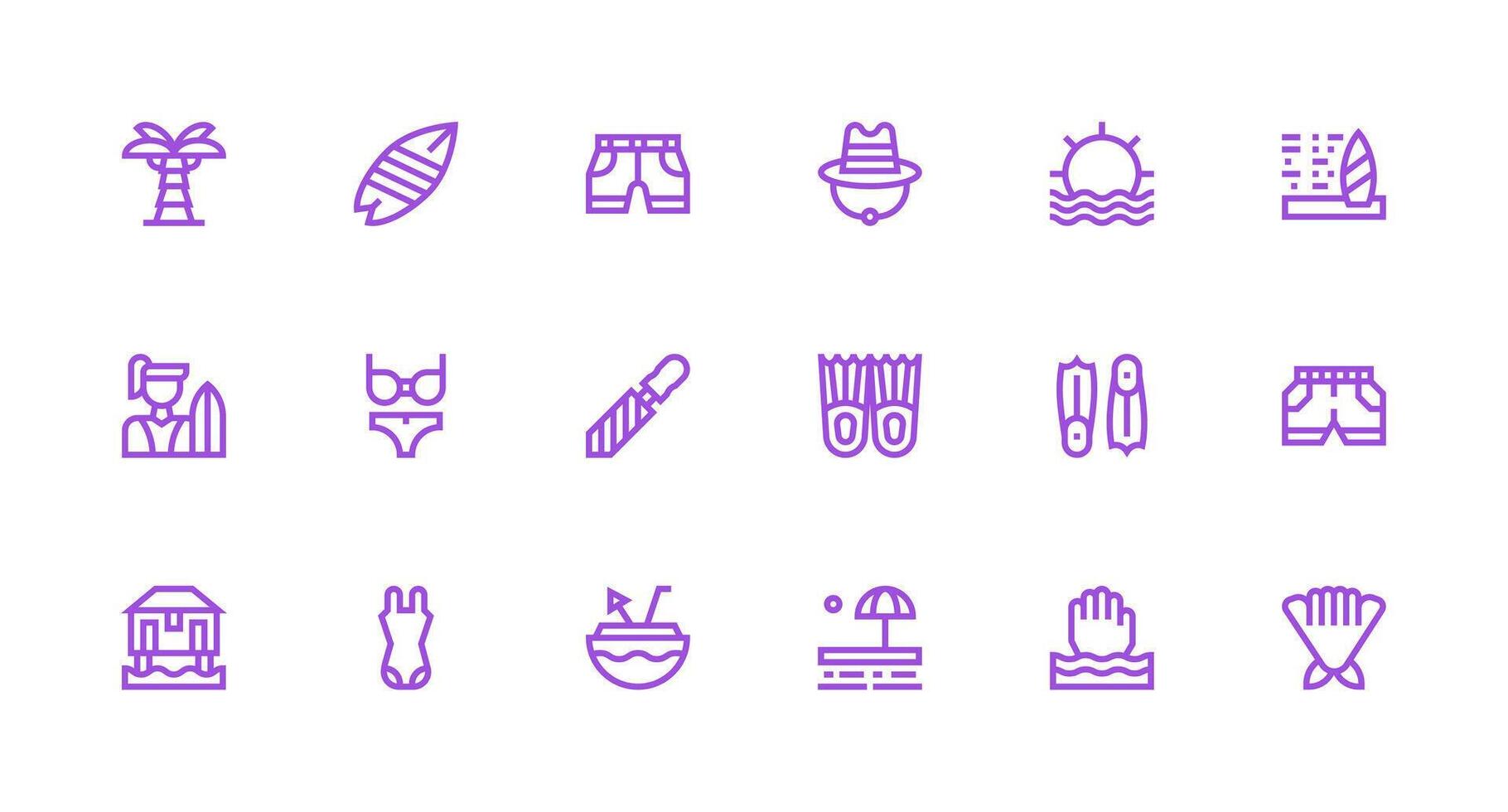 Beach Visual Pack containing 18 Strong Stroke Line Icons Balanced Icon Set for Functional Design vector