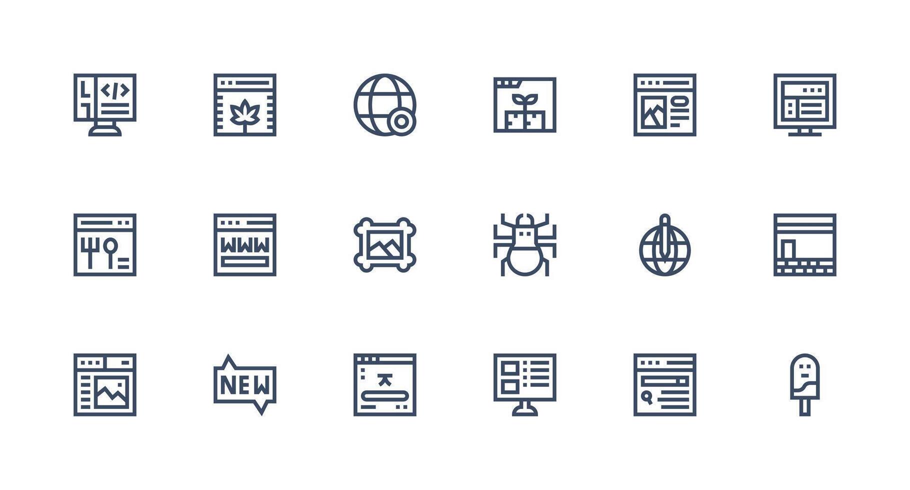 Strong Stroke Line Icons from Website Set with 18 Vectors Complete Icon Bundle for Web Design Free Vector