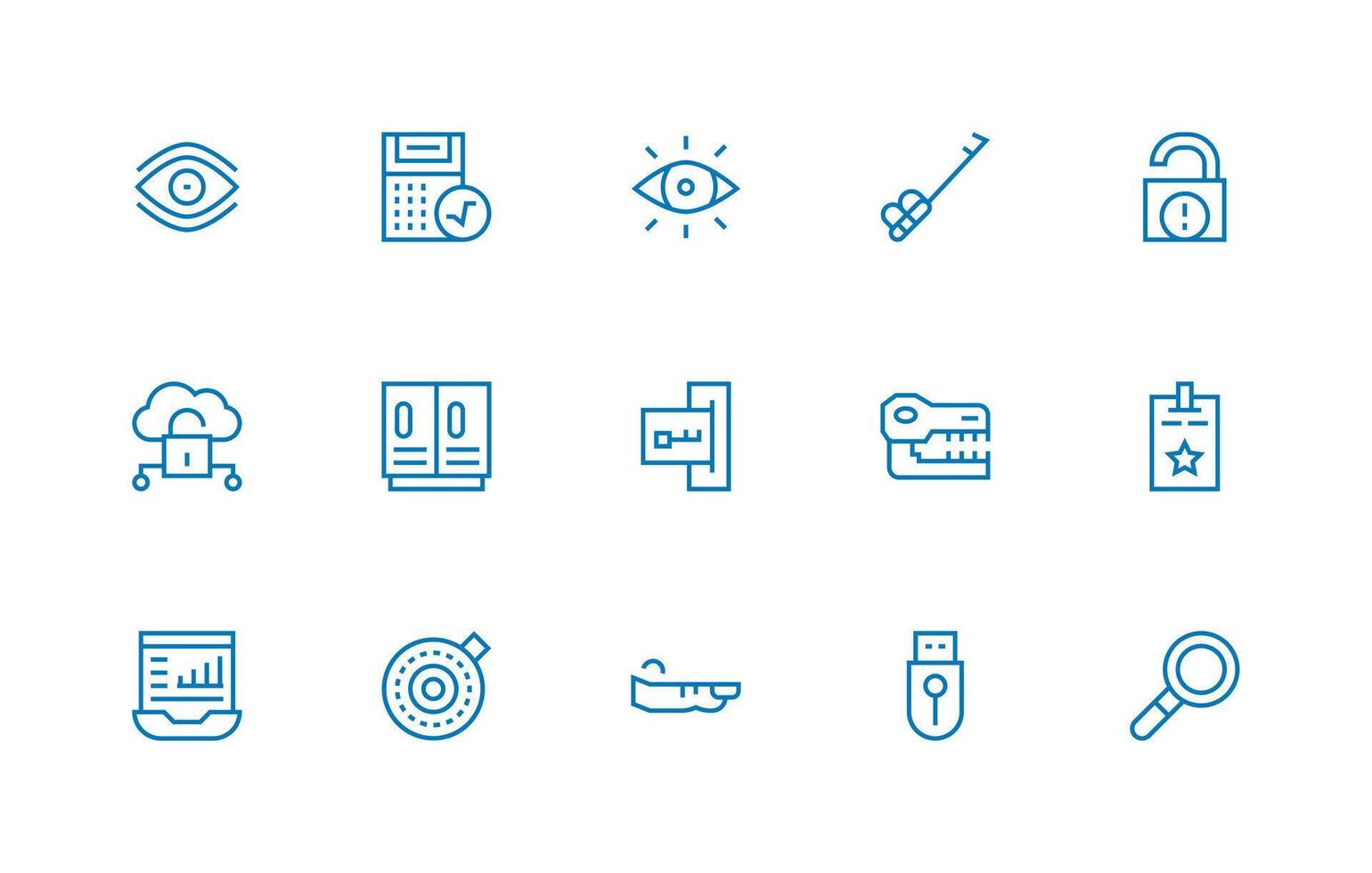 Key Visual Pack containing 15 Regular Line Icons Quick Access Icons for UI Development Free Vector