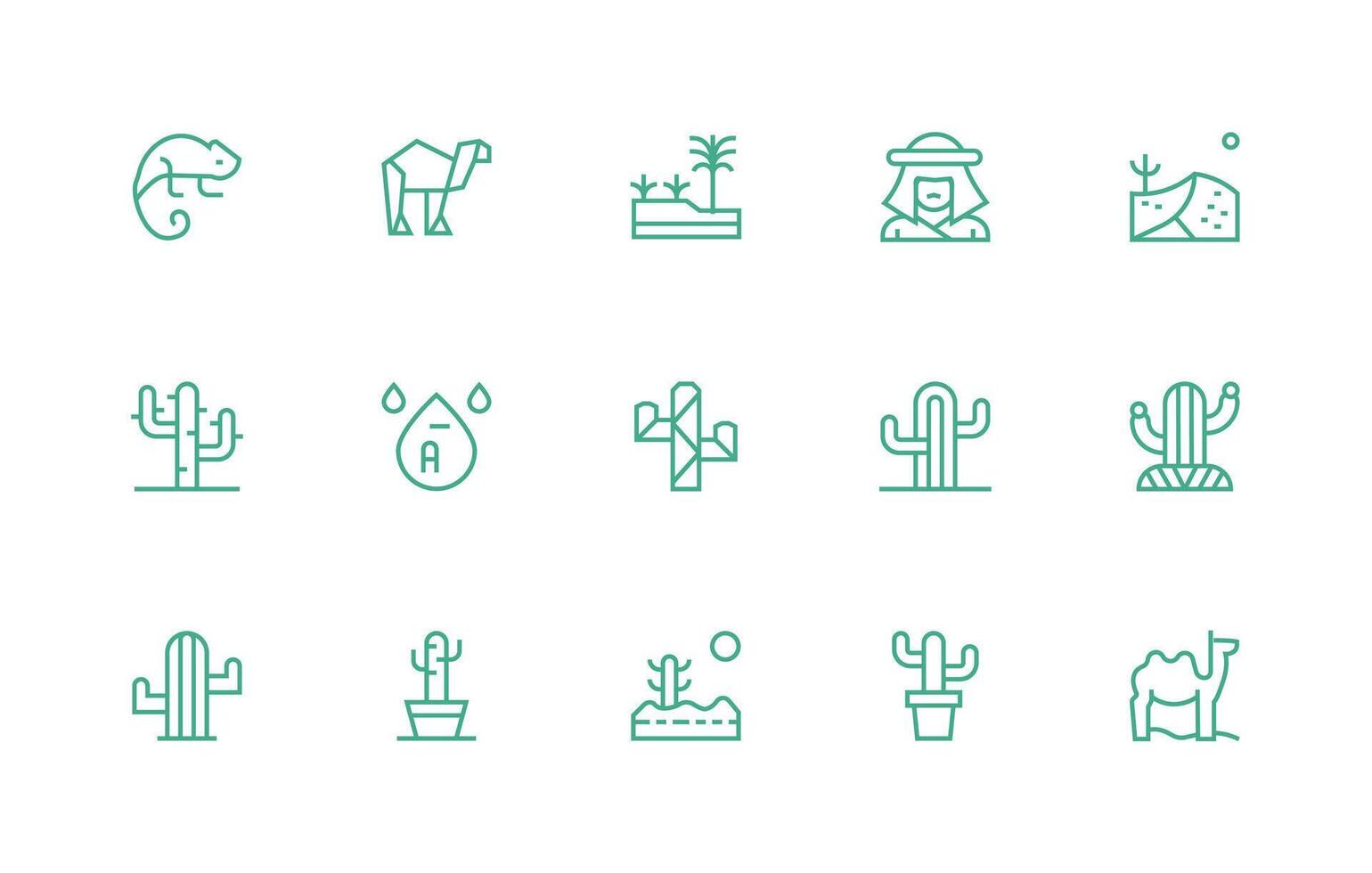 Desert featuring 15 Icons in Regular Line Design Balanced Icon Set for Functional Design Free Vector