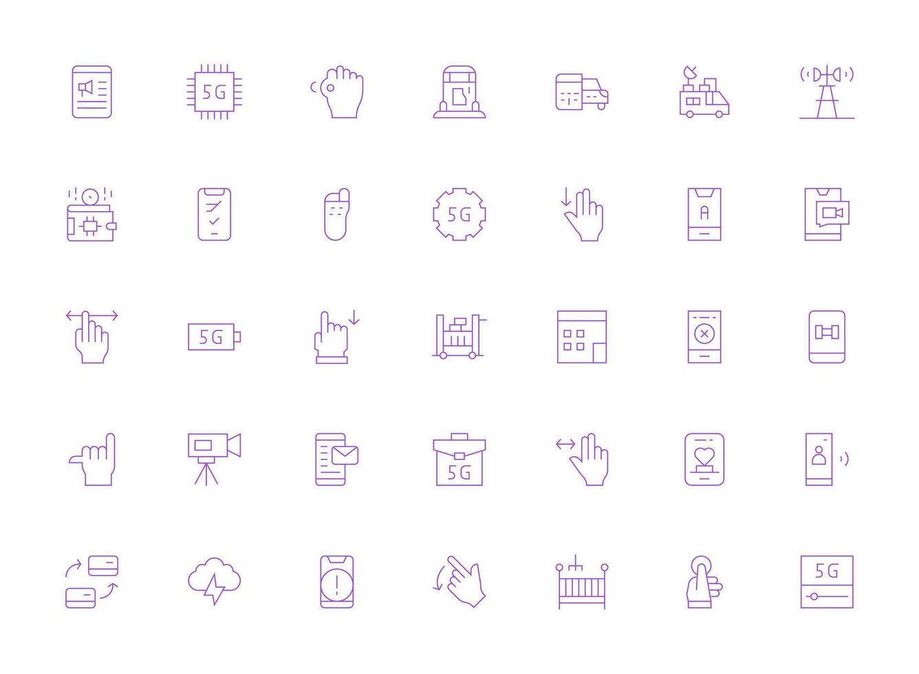 Light Line Icons from Mobile Set with 35 Vectors Icon Set for Projects Free Vector