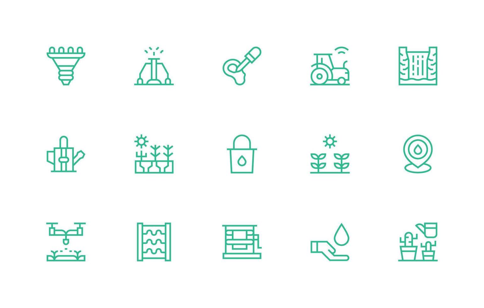 Irrigation Icon Set with 15 Regular Line Graphics Compact Icon Set vector