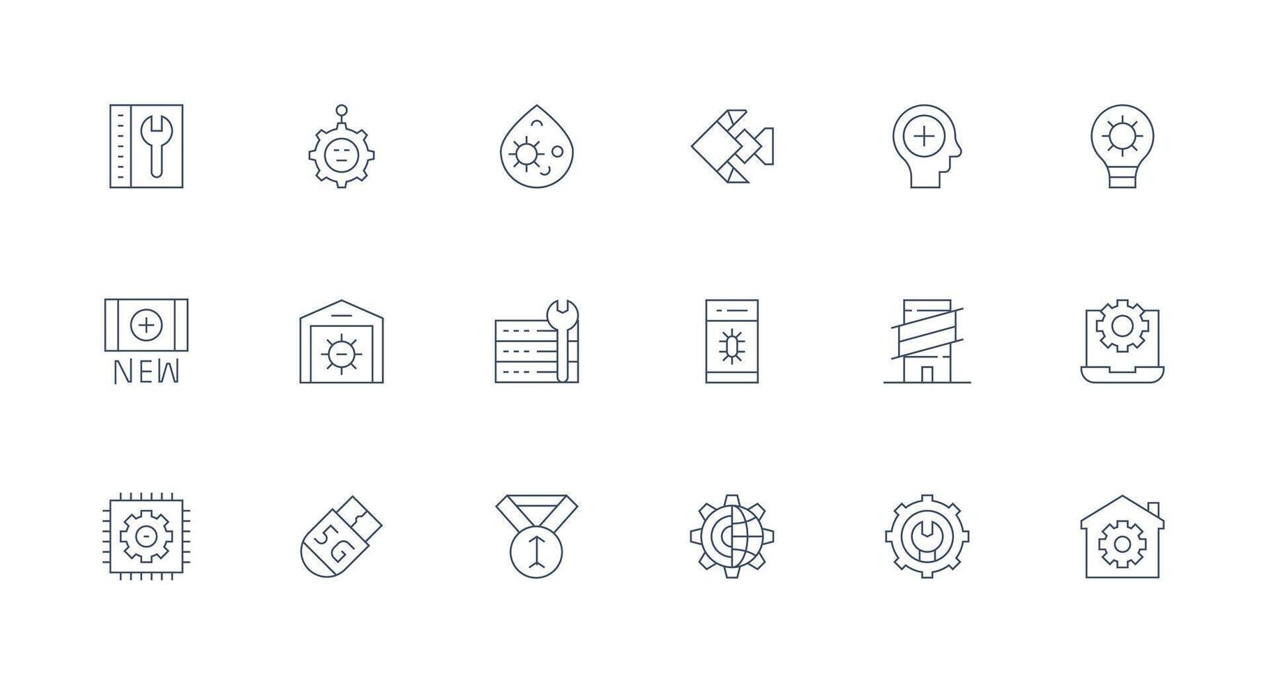 Upgrade Icon Set with 18 Minimal Line Graphics Multi-Style Icon Collection Free Vector