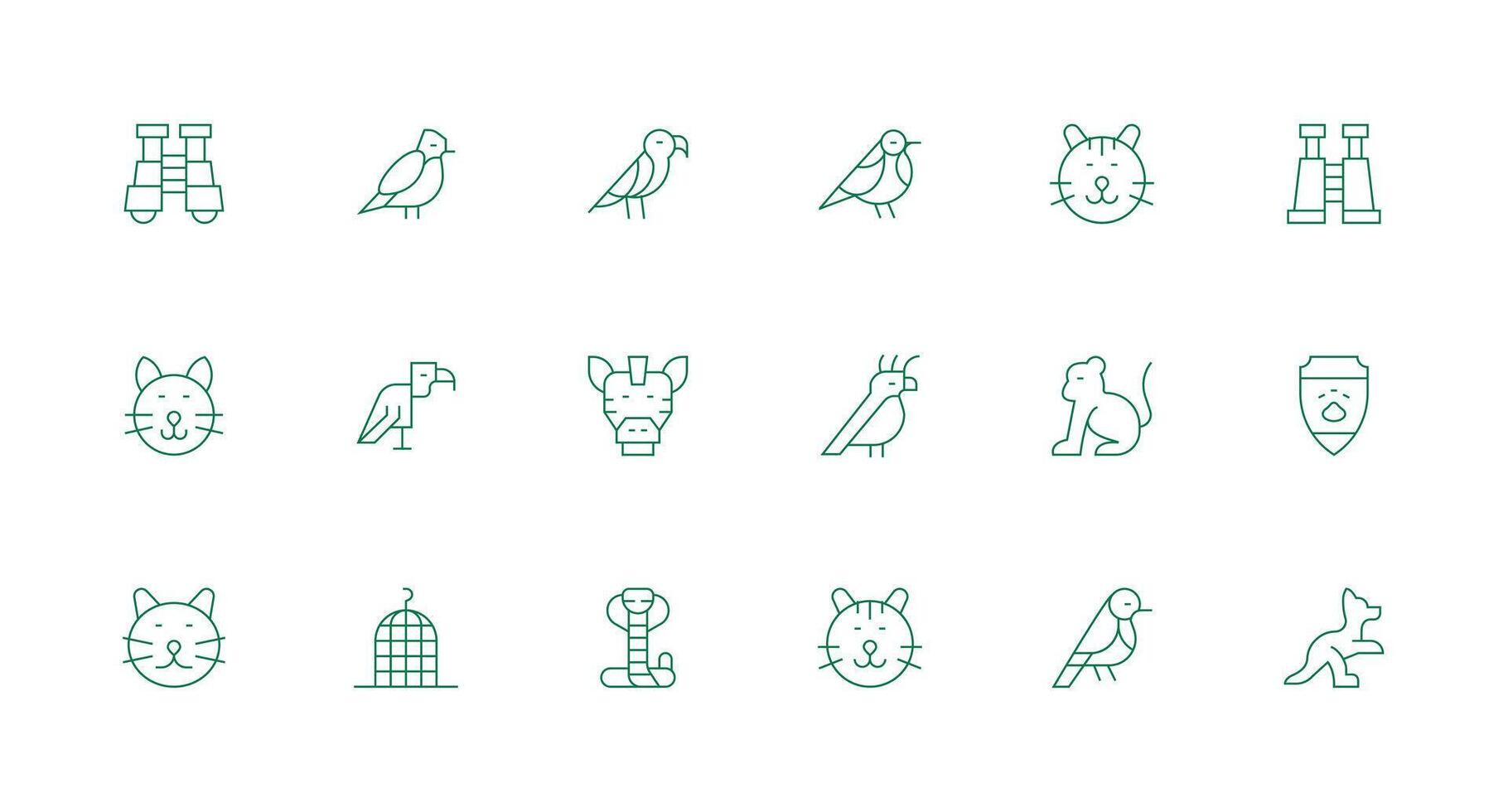 Zoo featuring 18 Icons in Minimal Line Design Multi-Style Icons for Creative Projects Free Vector
