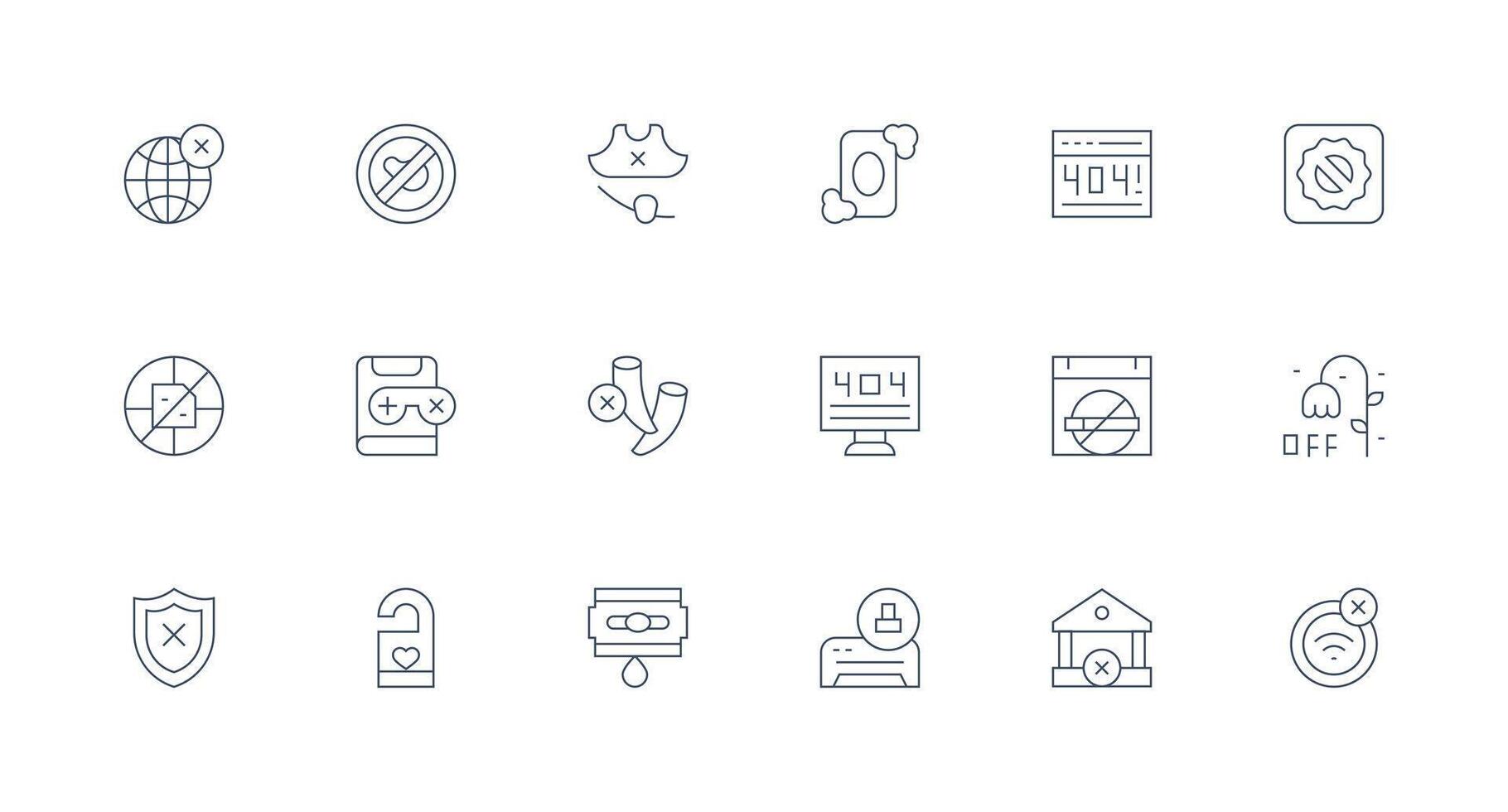 Unavailable Set with 18 Minimal Line Icons Pixel Perfect Icons for Modern Apps vector