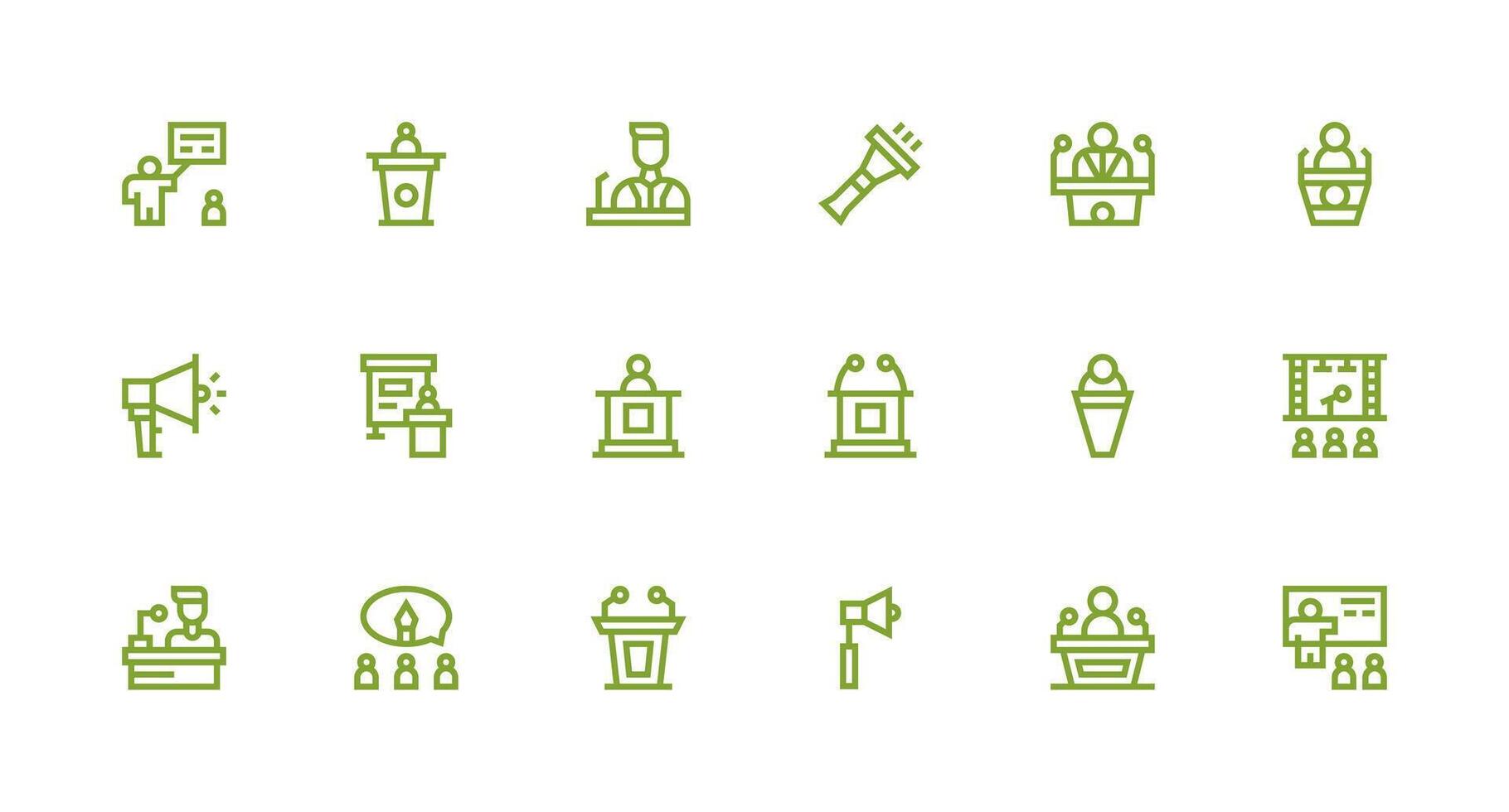 18 Strong Stroke Line Icons for Public Speaking Graphics Simplified Icon Pack for Visual Tools vector